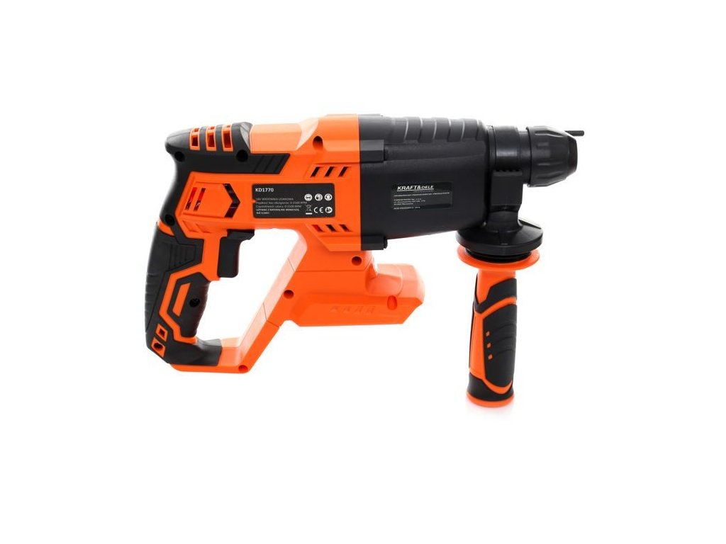 Jeden univerzální akumulátor pro všechna zařízení z řady PROSERIES. Příklepová vrtačka 18V PROSERIES KD1770 je určena pro vrtání s příklepem do zdiva, betonu a kamene, ale také pro vrtání do kovu, dřeva, plastu a keramiky. Hlavní rukojeť je vyrobena ze speciálního protiskluzového materiálu pro bezpečné a pohodlné držení. Součástí je také přídavná dolní rukojeť. Vrtačka disponuje indikátorem baterie pro snadné plánování práce a LED osvětlením, které usnadňuje práci ve špatně osvětlených místech.