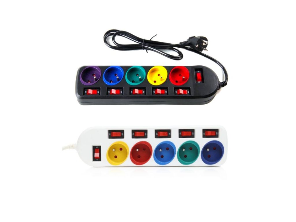 Prodlužovací kabel má 5 zásuvek, které jsou barevně odlišené, s uzemňovacími kolíky (jednotlivé vypínače ke každé zásuvce), s centrálním vypínačem, jakož i s přepěťovou ochranou. Délka přívodního kabelu je 1,5m.