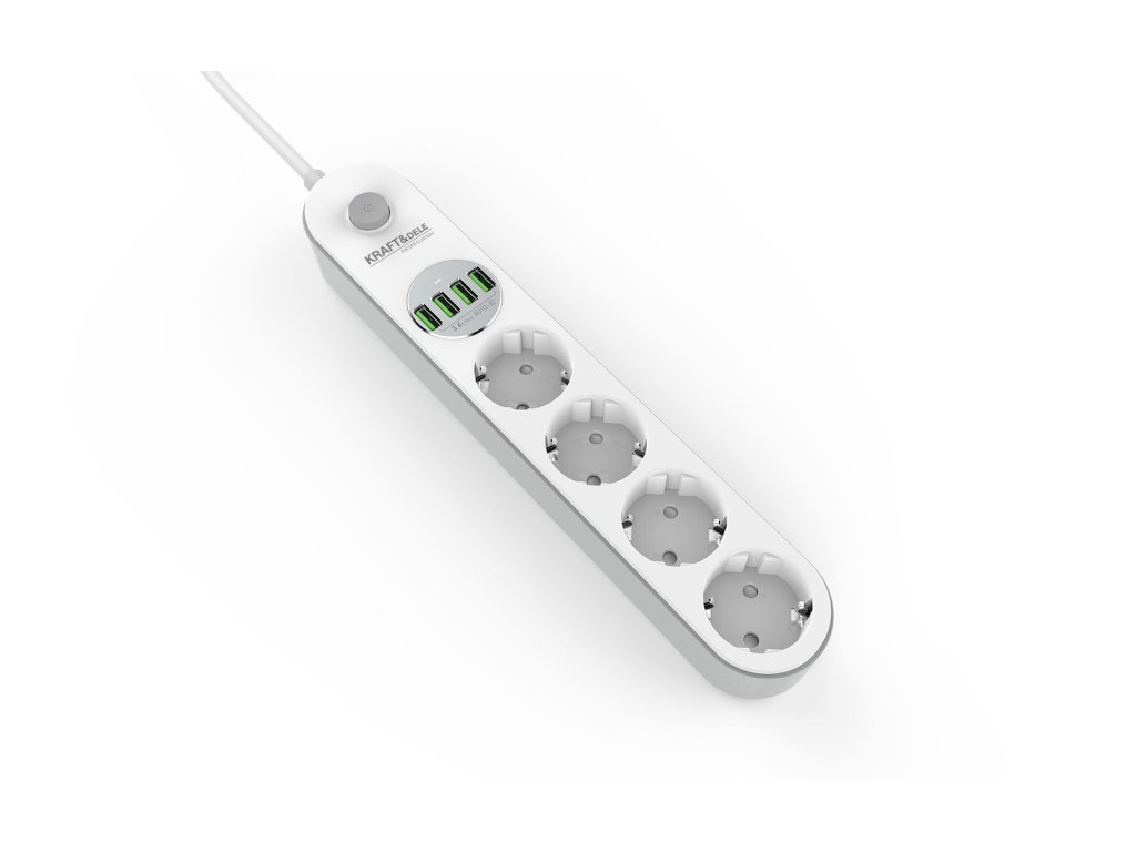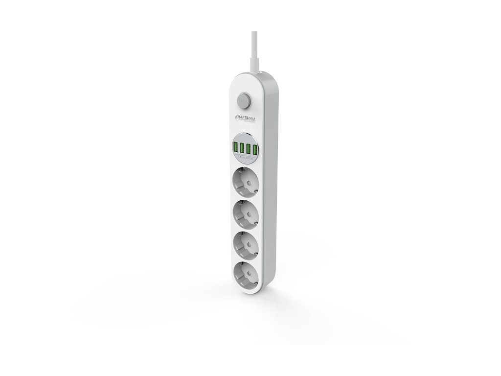 Prodlužovací kabel 2m, 4 zásuvky + 4 USB KD4030