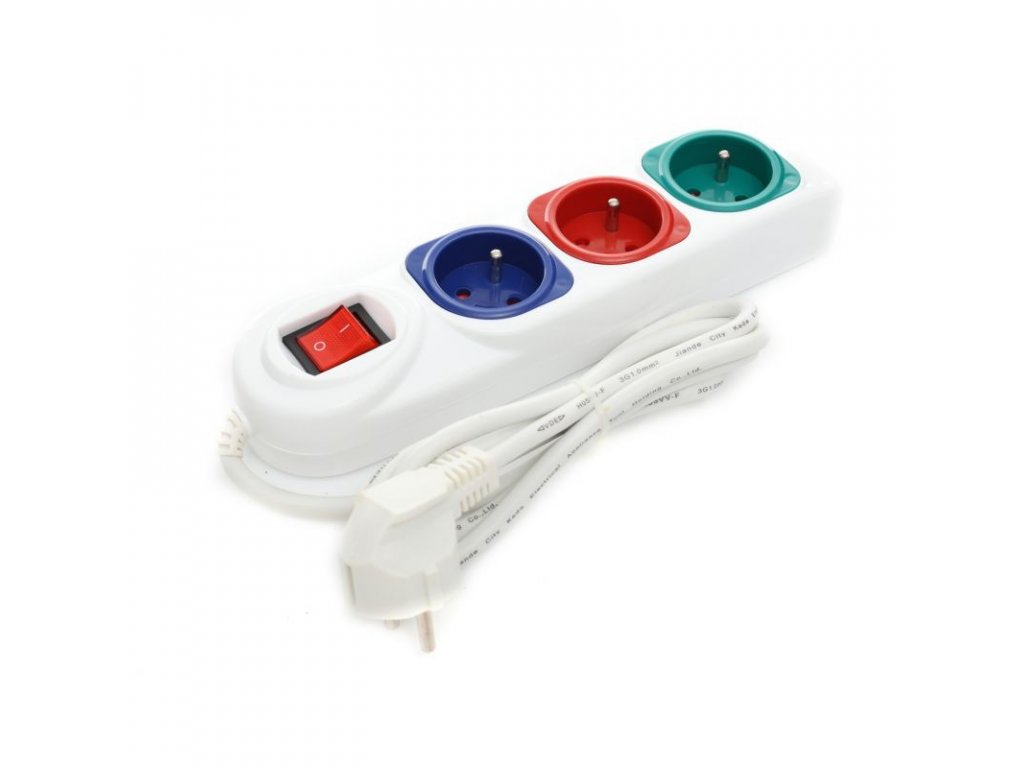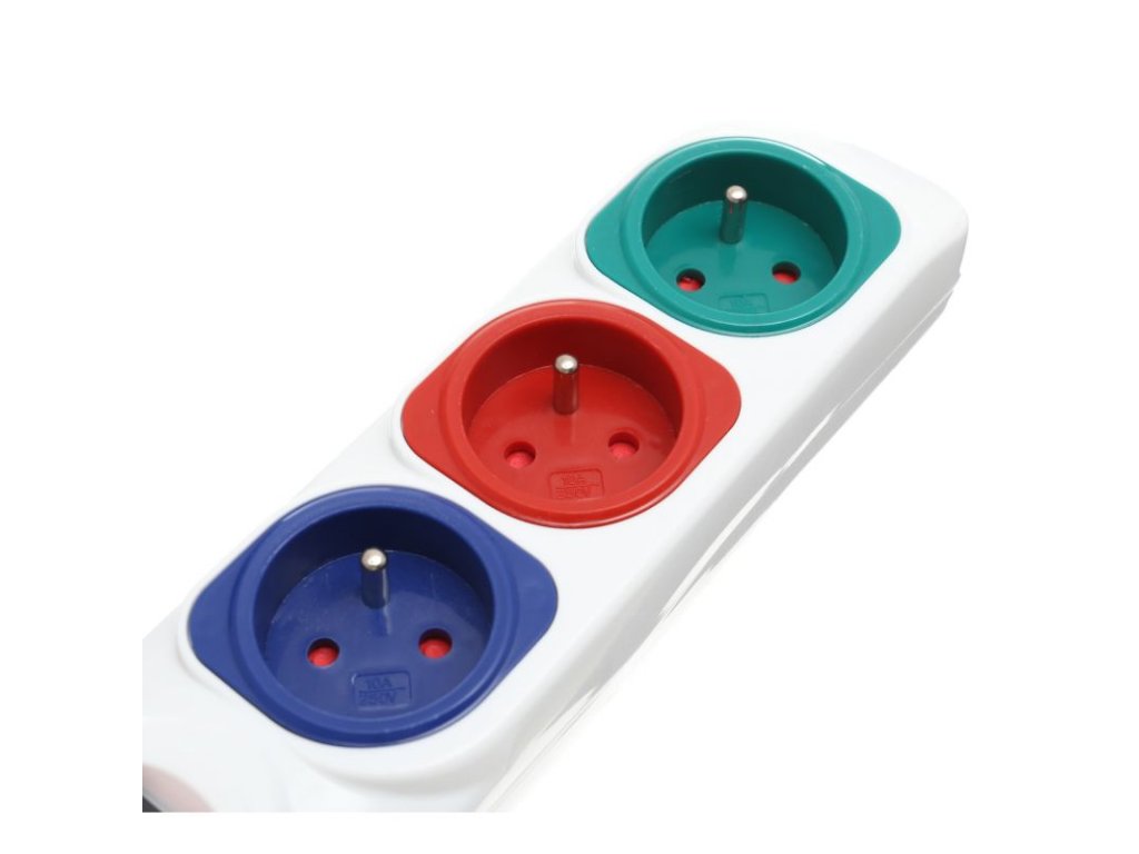 Prodlužovačka má 3 zásuvky, které jsou barevně odlišené, s uzemňovacími kolíky (jednotlivé vypínače ke každé zásuvce), s centrálním vypínačem, jakož i s přepěťovou ochranou.