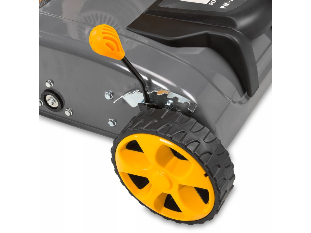 S objemným 40litrovým košem, odolným proti deformaci díky ocelovému rámu, je sběr nečistot rychlý a efektivní. Centrální nastavení pracovní hloubky v osmi polohách zajišťuje optimální výsledky. Kvalitní ložisková kola a robustní kovový kryt garantují dlouhou životnost. Součástí dodávky jsou i dva přídavné hnací řemeny. S POWERMAT PM-AWS-65 získáte profesionální péči o trávník s zárukou 24 měsíců a návodem v českém jazyce.