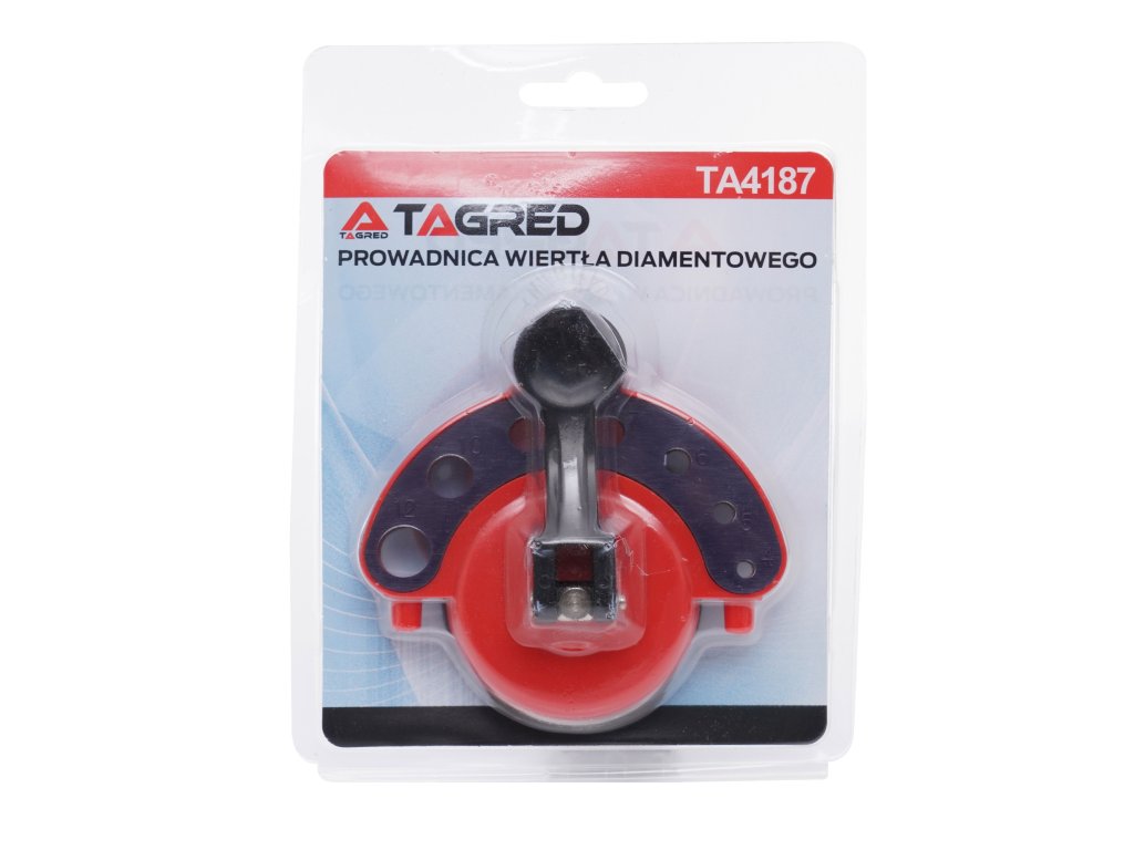 Prowadnica do wierteł koronowych, diamentowych, otwornic TAGRED do wiercenia w płytkach na mokro, zabezpiecza przed poślizgiem wiertła na powierzchni płytki. Przyrząd przyspiesza i ułatwia pracę i zapewnia dużą precyzję wiercenia.