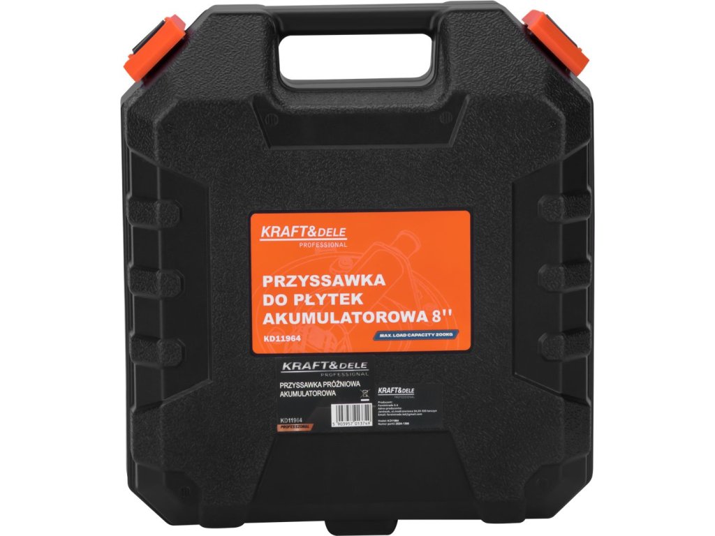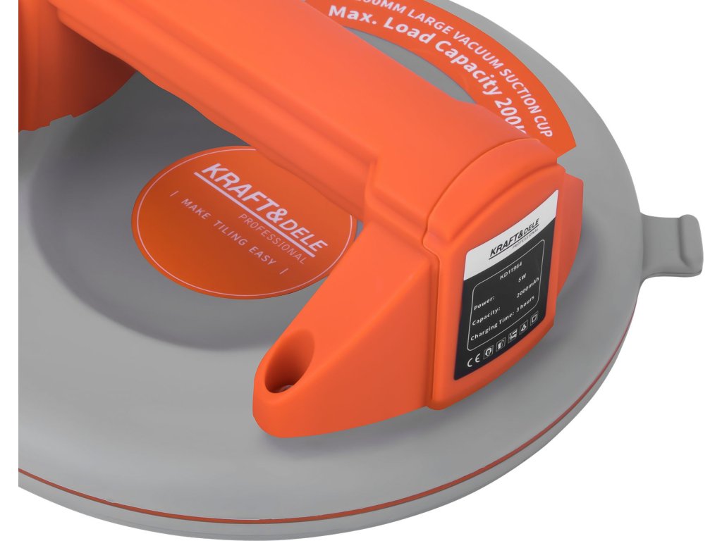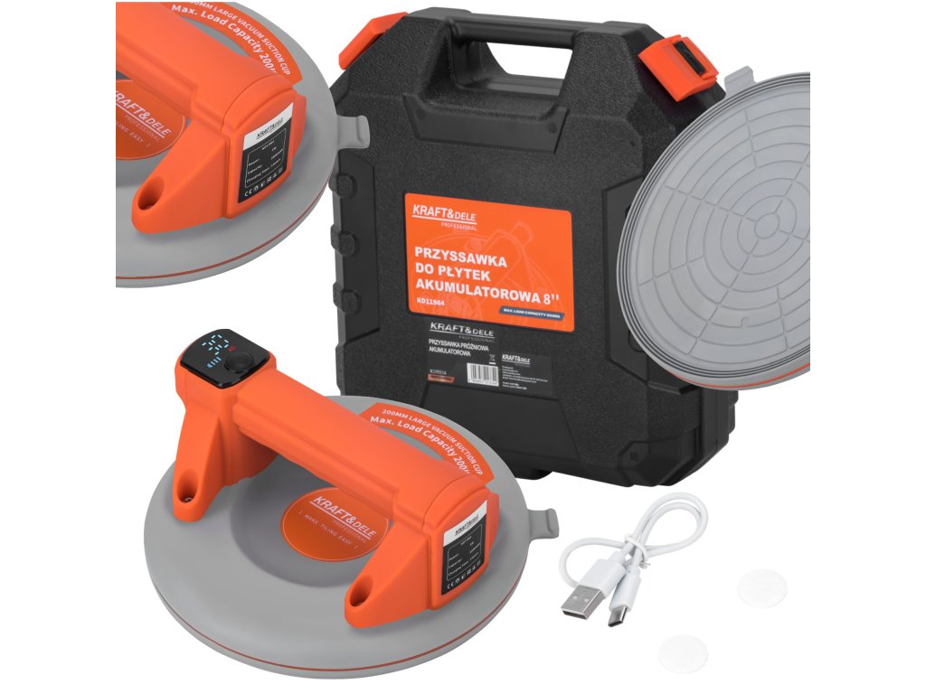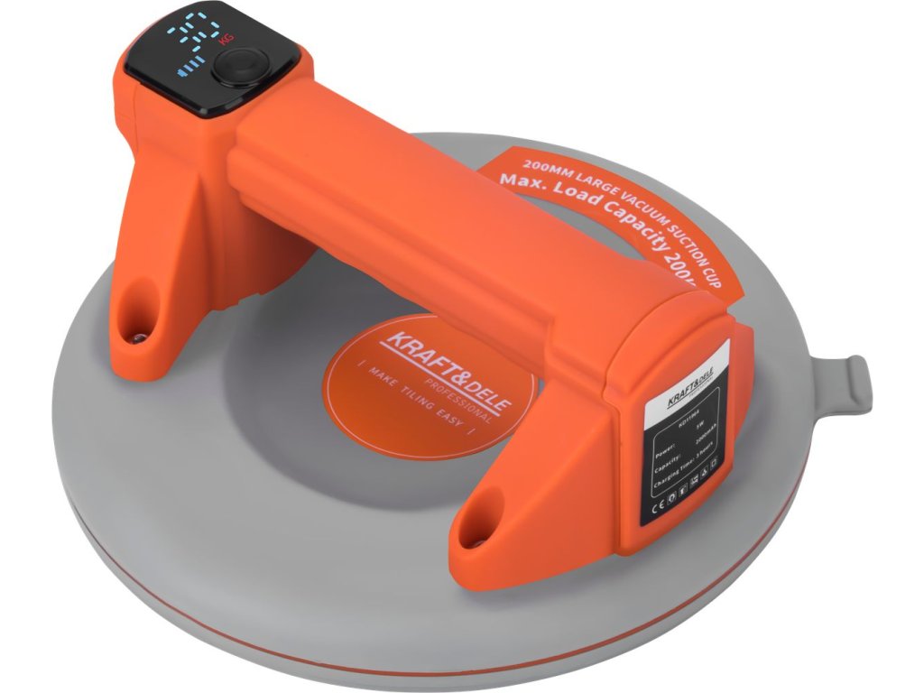 KD11964 to kompaktowa i wydajna akumulatorowa przyssawka o średnicy 200 mm (8 cali) i maksymalnym udźwigu do 200 kg. Urządzenie przeznaczone jest do bezpiecznego transportu elementów z gładką powierzchnią, takich jak szkło, metal czy płyty kamienne.
