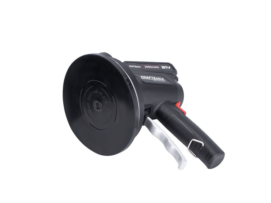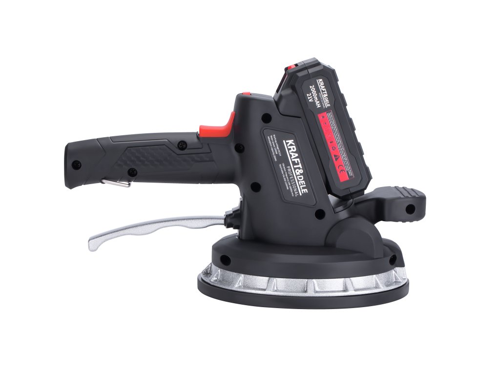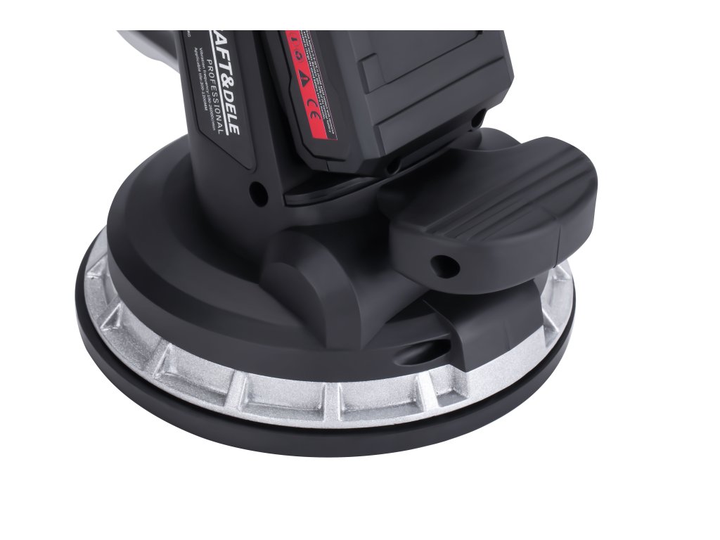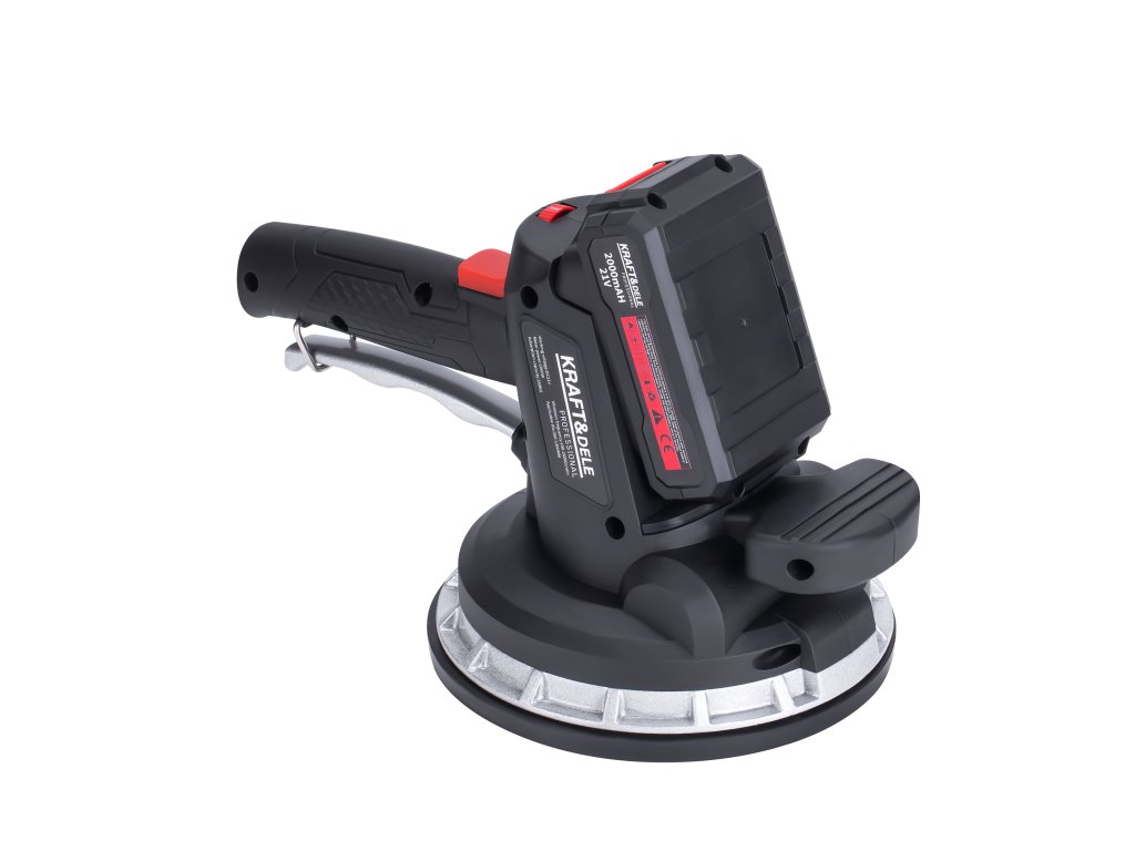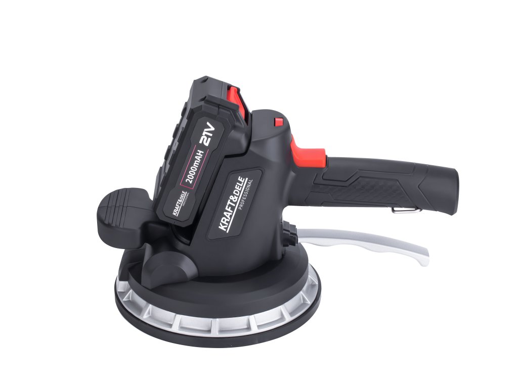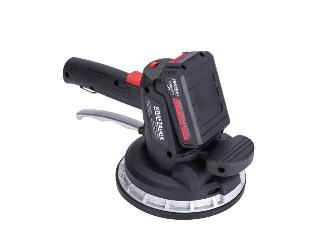 Bezprzewodowa przyssawka wibrująca do układania płytek polskiej marki Kraft&Dele model KD10458. Umożliwia łatwe ustawienie płytek poprzez przyssawkę, z możliwością podniesienia obiektów o wadze do 150 kg. Dodatkowo, dzięki funkcji wibracji, usuwa ona resztkowe pęcherzyki powietrza, które mogą prowadzić do potencjalnych pęknięć, zapewniając tym samym solidne i trwałe połączenie płytki z podłożem.
