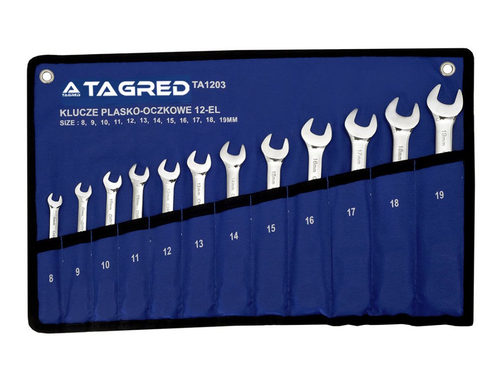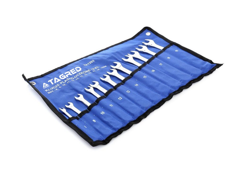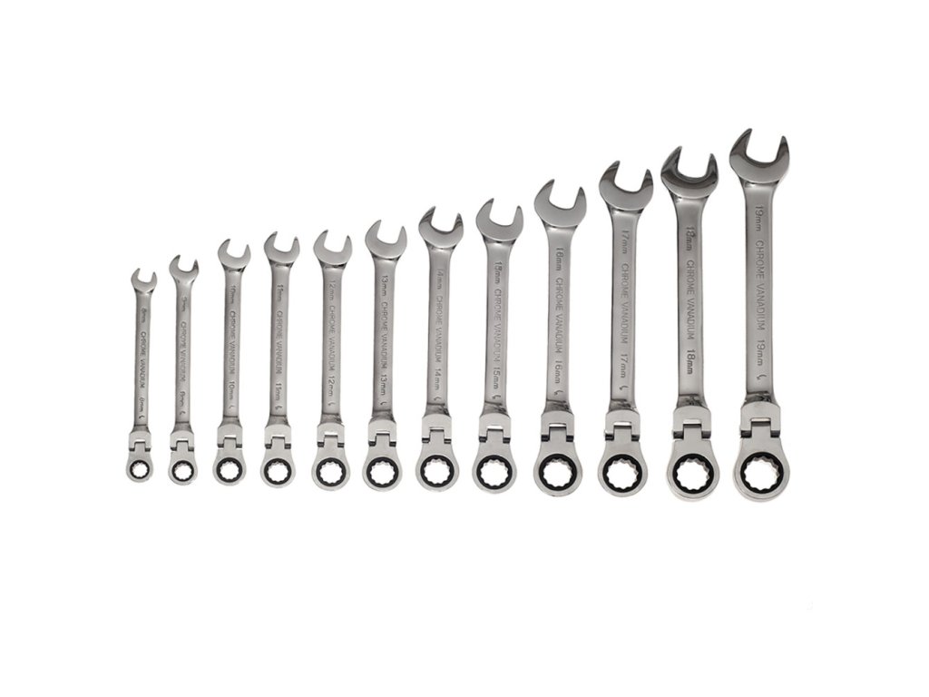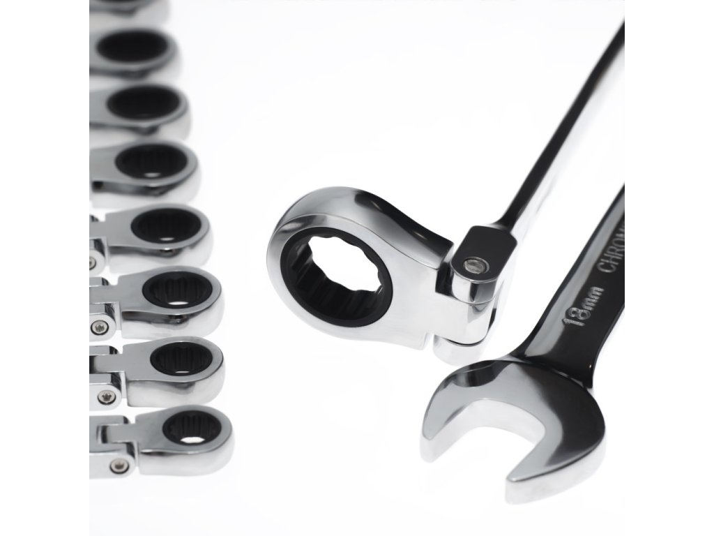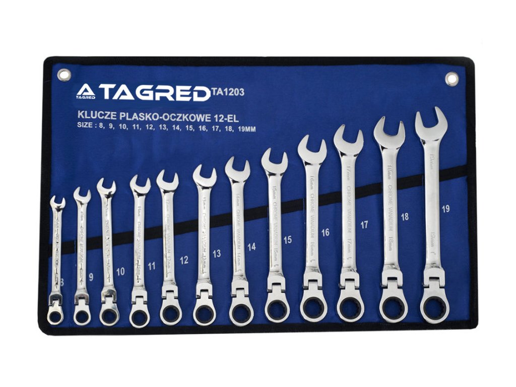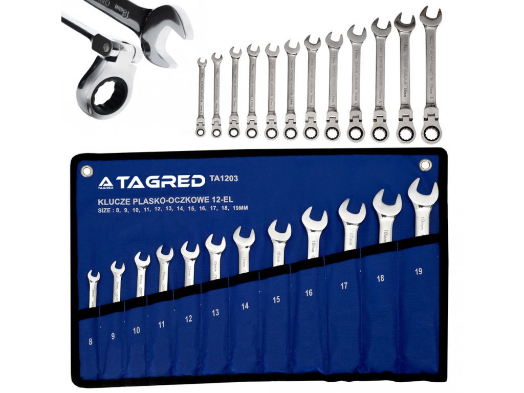 Ráčnové očkoploché klíče 12 ks s kloubem, 8-19 mm, CrV, TA1203