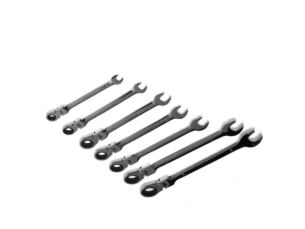 Ráčnové očkoploché klíče s kloubem, 8-19 mm, sada 7 ks, TA1207