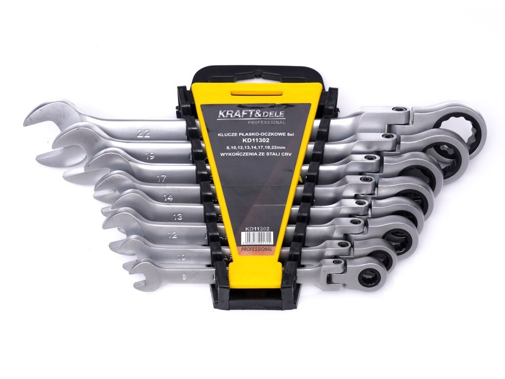 Ráčnové očkoploché klíče s kloubem, sada 8 ks KD11302