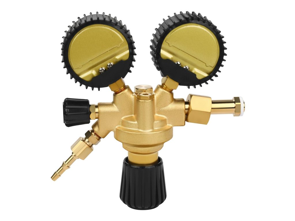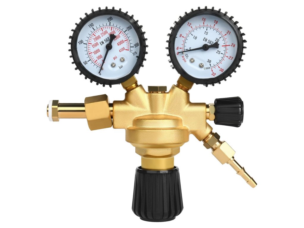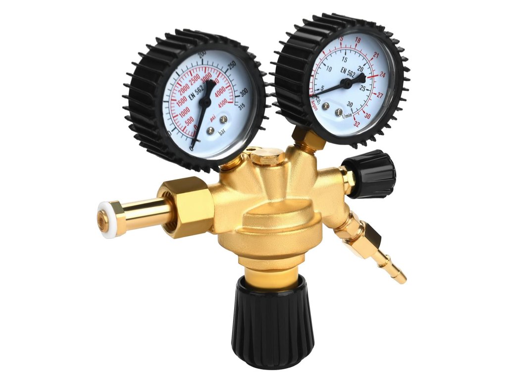 Urządzenie oferuje płynną regulację przepływu do 32 l/min oraz wytrzymuje maksymalne ciśnienie wejściowe do 315 bar. Mosiężna konstrukcja skutecznie odprowadza niską temperaturę powstającą podczas rozprężania gazu, co ogranicza ryzyko zamarzania. Reduktor wyposażony jest w zaworek zamykający przepływ bez utraty ustawionych parametrów, zawór bezpieczeństwa oraz czytelne manometry z gumowymi osłonami zwiększającymi ich trwałość.