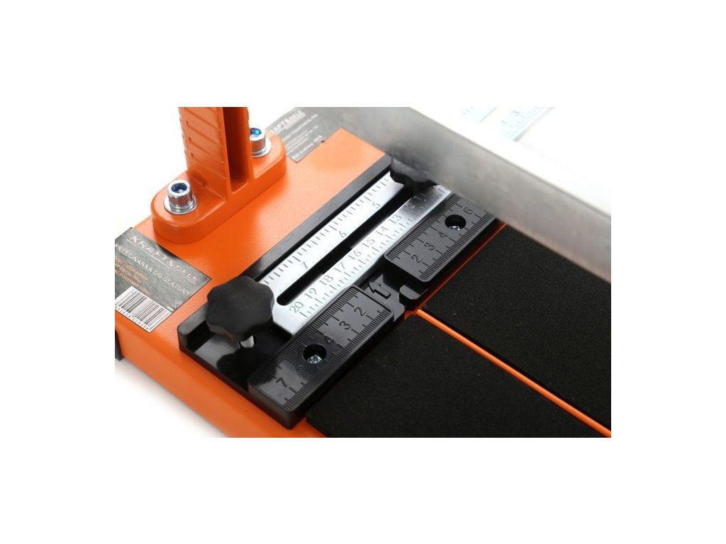 Řezačka dlaždic KD1579 se skládá ze stabilní základny ze silného ocelového plechu potaženého vrstvou technické mikrokaučuku, dvou paralelních vodítek a řezací jednotky, která se po nich pohybuje. Součástí je kruhový nůž o průměru 16 mm vyrobený ze speciálně tvrzených slinutých karbidů. Díky pohyblivému úhlovému držáku připevněnému k základně je možné řezat dlaždice v libovolném úhlu. Pevná a stabilní konstrukce umožňuje použití zařízení pro renovační a obkladačské práce na amatérské i profesionální úrovni. Velký rozměr základny umožňuje řezání největších standardních dlaždic.