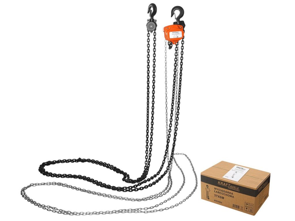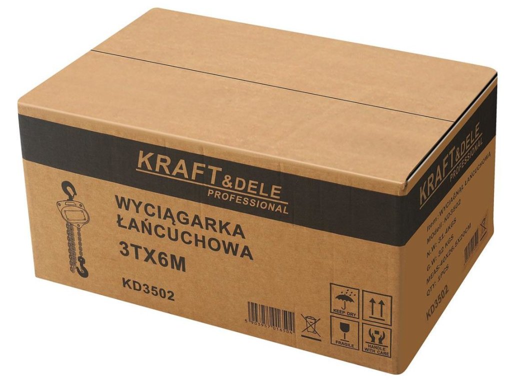 Řetězový zvedák KD3502 je robustní průmyslové ruční zařízení určené pro zvedání a spouštění těžkých břemen o hmotnosti až 3 tuny. Díky odolnému mechanismu a pevnému řetězu je ideální pro dílny, výrobní haly, sklady a staveniště. Jeho jednoduchá konstrukce a intuitivní ovládání z něj činí spolehlivý nástroj pro každodenní práci. Nosnost až 3 tuny – ideální pro profesionální použití. Robustní ocelový řetěz o délce 6 metrů s průměrem 8 mm. Kompaktní, odolné litinové pouzdro. Ruční řetězový mechanismus umožňuje přesné ovládání. Ideální pro zvedání motorů, strojů a ocelových konstrukcí.