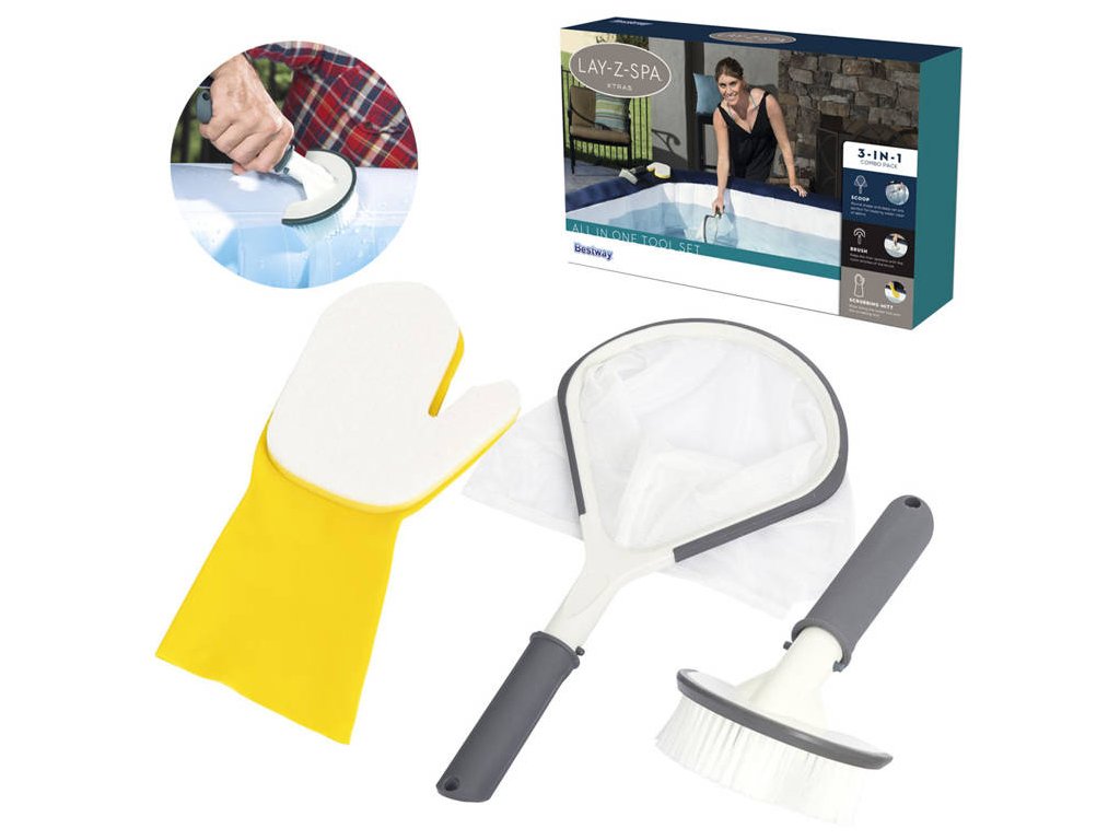 Všechny prvky setu Bestway 60310 jsou určeny pro přímé použití nebo je lze snadno připojit k teleskopické tyči (není součástí balení) pro dosažení většího dosahu a ještě pohodlnější údržby. Udržujte své Lay-Z-Spa vždy v bezvadném stavu!