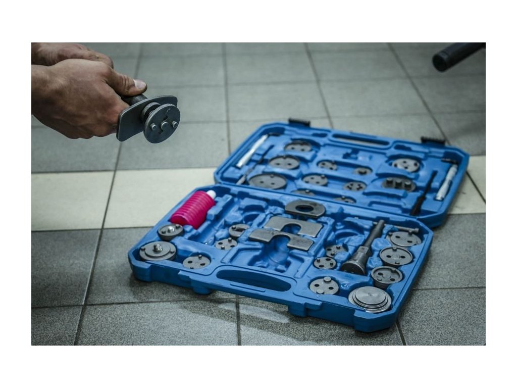 V sadě se nachází 35 ks součástí pro montáž. Obsahuje levé i pravé nástroje, pomáhá předejít poškození pístu a obložení.