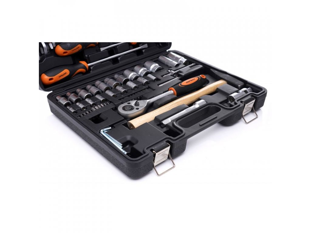 Celá sada se skládá z 66 různých prvků, které zajistí správný výběr nářadí pro vaše potřeby. Nástroje jsou vyrobeny z tvrzené chromvanadiové (CrV) oceli určené pro dílenské nářadí. Chrom zaručuje oceli odolnost proti korozi, oxidaci, otěru a vysokou odolnost vůči vysokým teplotám. Přídavek vanadu inhibuje růst zrn během zpracování a zároveň zvyšuje tažnost jak kalené, tak temperované formy.