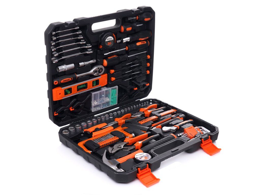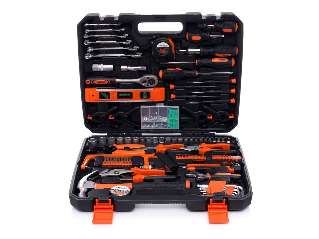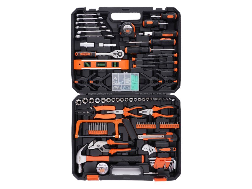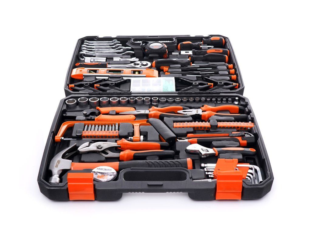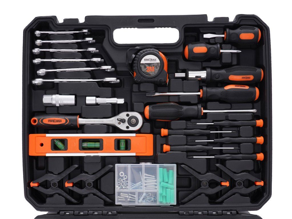 Extrémně rozsáhlá sada nářadí Kraft&Dele se symbolem KD10837. Nářadí se vyznačuje solidním zpracováním, odolnými materiály a šikovným kufrem, ve kterém má každé nářadí své místo. Celá sada se skládá ze 168 různých prvků, které zajistí správný výběr nářadí pro vaše potřeby. Nástroje jsou vyrobeny z kalené chrom-vanadiové oceli (CrV) určené pro dílenské nářadí. Chrom zaručuje odolnost oceli vůči korozi, oxidaci, otěru a vysokou odolnost vůči vysokým teplotám. Přídavek vanadu inhibuje růst zrn během zpracování a zároveň zvyšuje tažnost kalené i temperované formy. Kufr vyrobený z odolného plastu vám umožní mít věci uspořádané a snadno přenášet své nářadí. Každý nástroj má své určené místo, kde snadno najdete požadovanou velikost klíče.