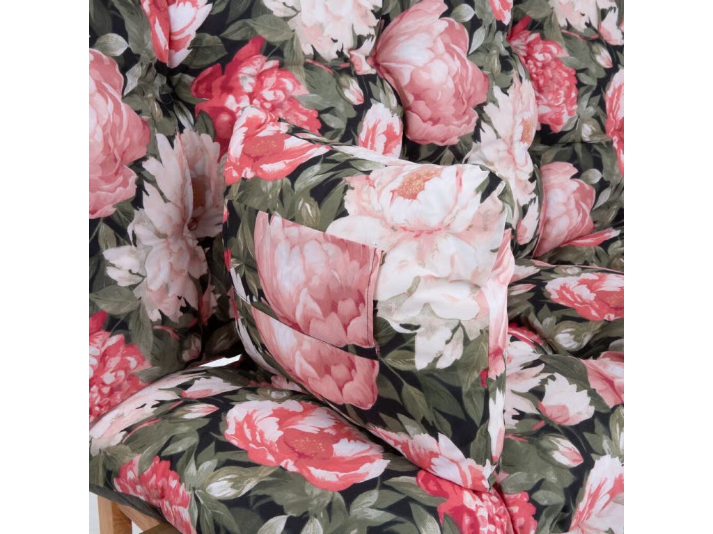 Tato sada sedáků je stylovou volbou pro oživení vaší zahradní houpačky. Dva hrubé sedáky na houpačku jsou vyrobené s důrazem na detail, kombinují vysoce kvalitní materiály s funkčností, zajišťují odolnost a pohodlí při používání. Horní část je vyrobena z bavlněno-polyesterové tkaniny (48% bavlna, 52% polyester), spodní část je z polypropylenu. Pružná výplň z řezané houbičky flocke se dokonale přizpůsobí vašemu tělu a prošívání na opěradle a sedadle je nejen estetickým prvkem, ale také zabraňuje pohybu výplně. Oba sedáky jsou vybavený šnůrkama pro připevnění k rámu. Součástí sady jsou také 2 područky, které ještě více zpříjemní odpočinek na houpačce.