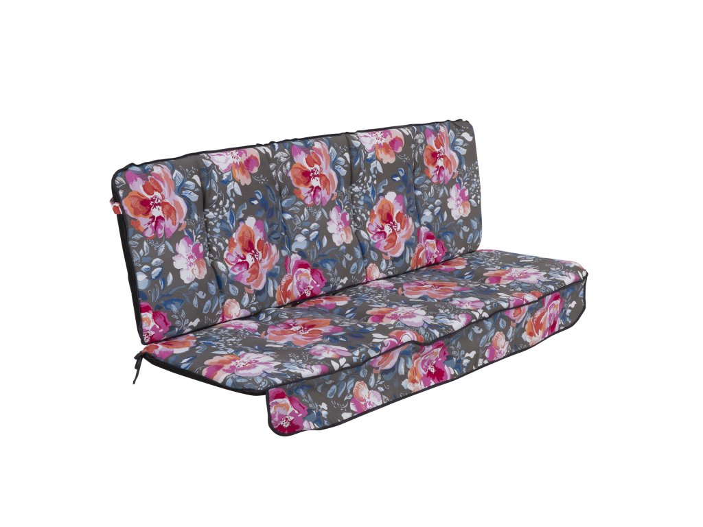 Sedáky s květinovým vzorem na houpačku. Tato sada sedáků je dokonalou kombinací funkčnosti a estetického vzhledu. Vrchní část je vyrobená ze 100% polyesterového mikrovlákna, které zajišťuje měkkost a také jednoduchou údržbu. Spodek je z polypropylenu. Komfort používání zvyšuje výplň z kvalitního polyesterového vlákna 600g, které zajišťuje měkkost a podporu. Polyesterový lem, kterým jsou sedáky obšity, chrání jejich okraje před oděrem. Na sedáku na opěradlo jsou pásky a na sedáku na sedadlo jsou šňůrky pro stabilní připevnění k rámu. Sedáky mají dekorativní horizontální prošití (4 x sedadlo a 4 x opěradlo), které drží výplň na svém místě. Jsou vhodné na houpačky Latina z naší nabídky.