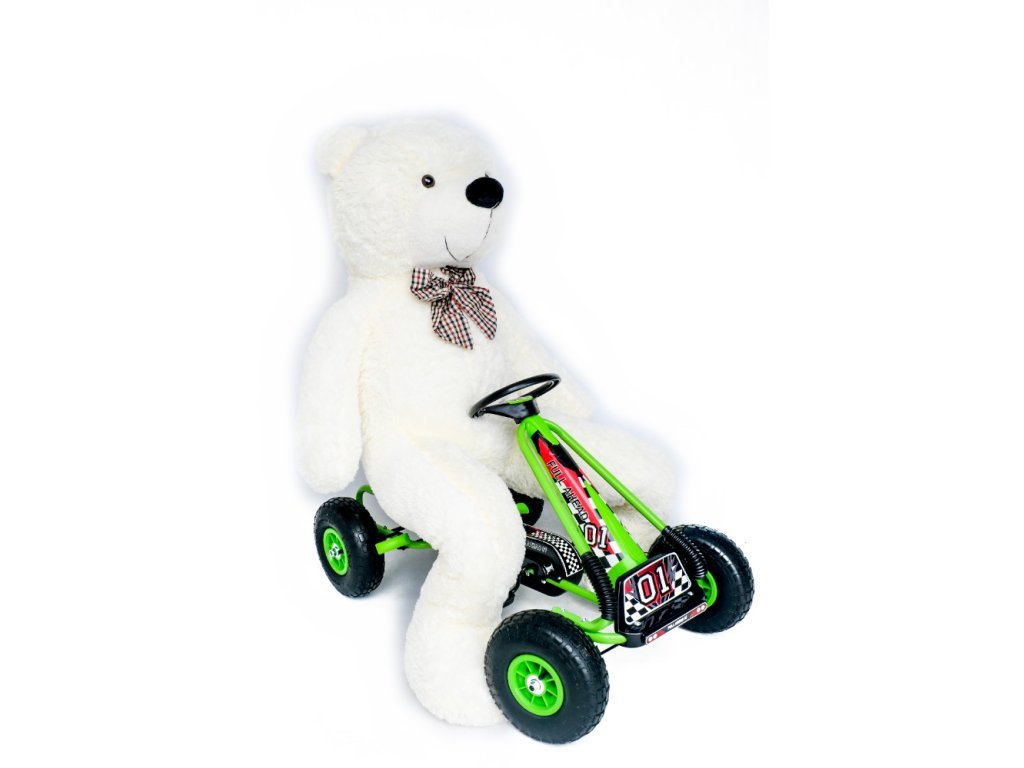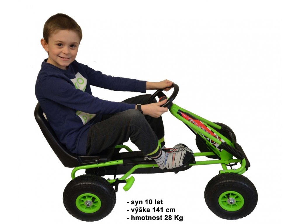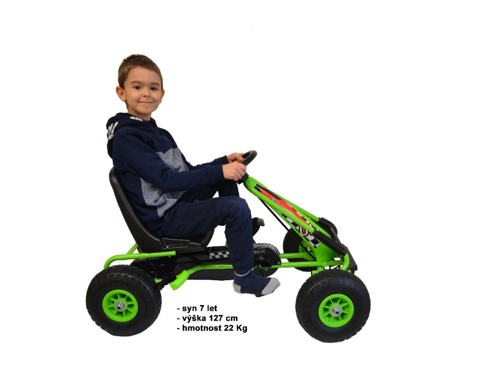 Představujeme Vám krásně barevnou šlapací čtyřkolku v moderním vzhledu. Vozítko je kvalitně vyrobeno, sedátko je polohovatelné do 3 pozic a je velmi pohodlné. Jeho hlavní předností jsou nafukovací gumová kola, díky kterým si Vaše dítě užije komfortní jízdu. Šlapadlo má ruční brzdu na 2 kola a řídí se pomocí šlapadel (pohon-řetěz). Skvělé šlapadlo v krásných barvách potěší všechny malé závodníky. Naše šlapadlo je vhodné pro děti od5 do 10 let,vizo fotografie našichy synů. Ve fotogalerii najdete i fotografii nádherného plyšáka 160 cm vysokého.