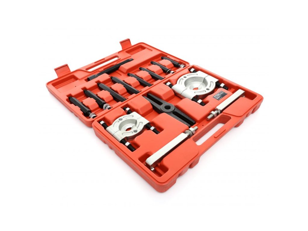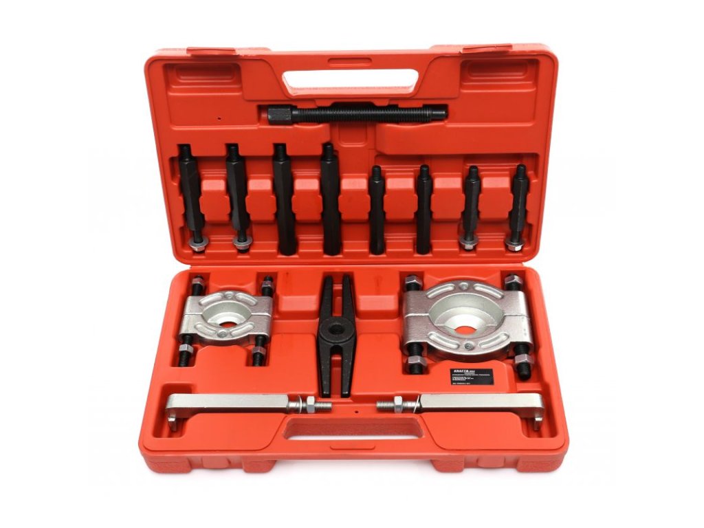 Stahovák na ložiska je nepostradatelný v každé dílně. Nástroj je velmi pohodlný na používání a výrazně urychluje prováděnou práci. Osvědčený design a pečlivá výroba vám výrazně zrychluje prováděnou práci. Sada umožňuje odstranit ložiska, převody, vnitřní kroužky a další těsně namontované a těžko přístupné díly.