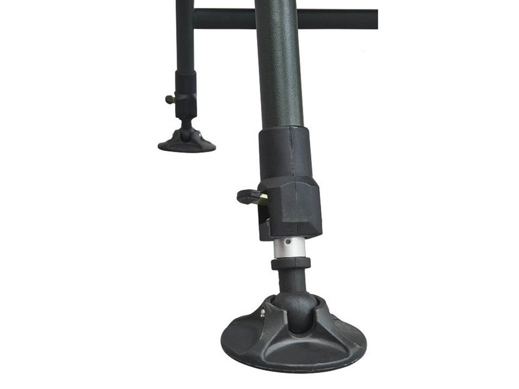 Nastavitelné nohy s širokými patkami proti zapadání zabezpečují pohodlnou možnost umístění v nerovném terénu.