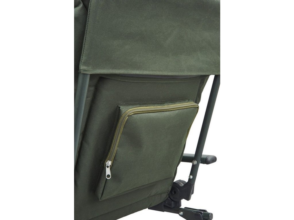 Široké opěrky na ruce přispívají k ještě většímu komfortu při sezení. Na zadní straně opěradla je kapsa na zip pro uložení drobností (29x26x3 cm). Na horní straně opěradla je integrované zesílené polstrování jako opěrka hlavy. Polohu opěradla je možné nastavit díky pevnému kloubu.