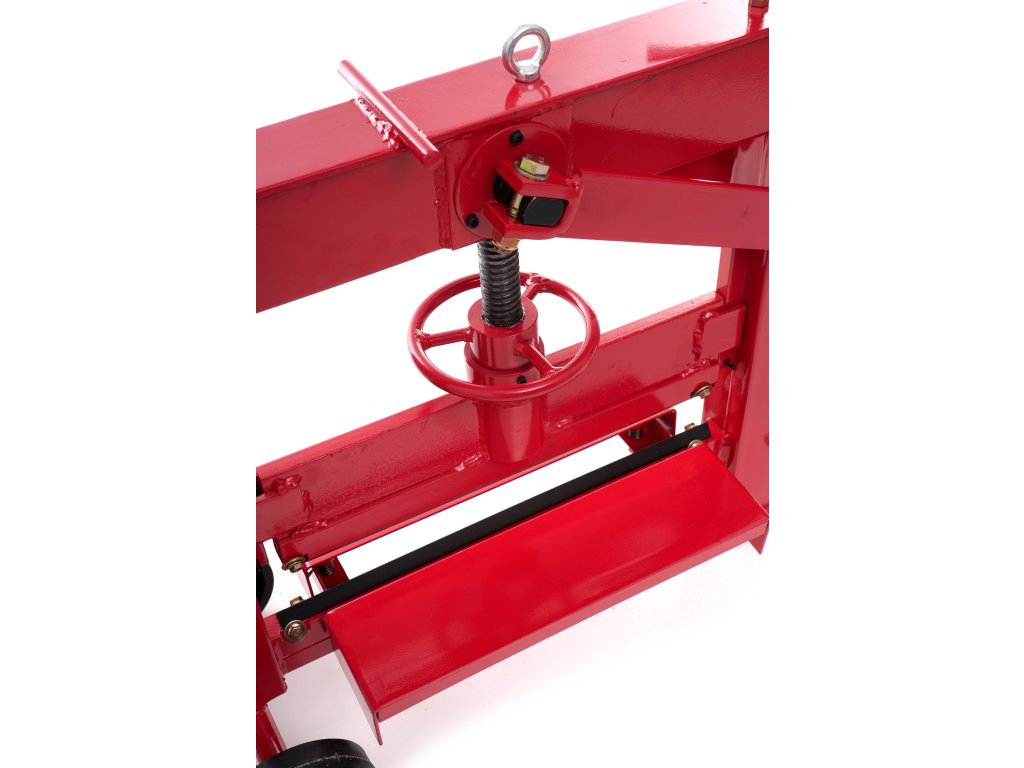 Samo-stabilizující horní lopatka, malá námaha díky teleskopické páce. Pružná nožová lišta s vyměnitelnými klouby - vybavená 4 břity. Snadné nastavení výšky mezery pomocí centrálního šroubu se závitem. Pružinové uzávěry, plynule nastavitelná výška řezu. Dvojice robustních koleček pro snadnou přepravu.