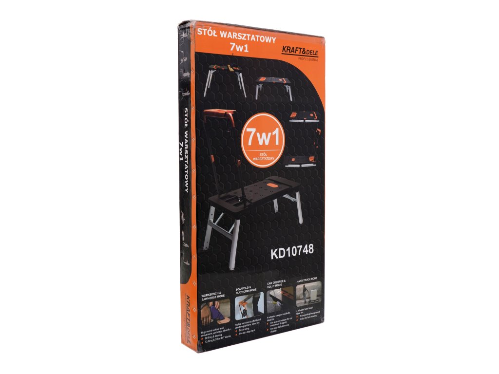 stół warsztatowy; stół warsztatowy 7w1; stół do garażu; wielofunkcyjny stół roboczy; koziołek warsztatowy; kobyłka do cięcia; leżanka warsztatowa; wózek platformowy; wózek ręczny; podest roboczy; Kraft&Dele KD10748;