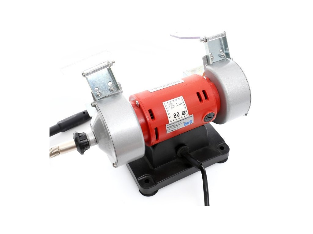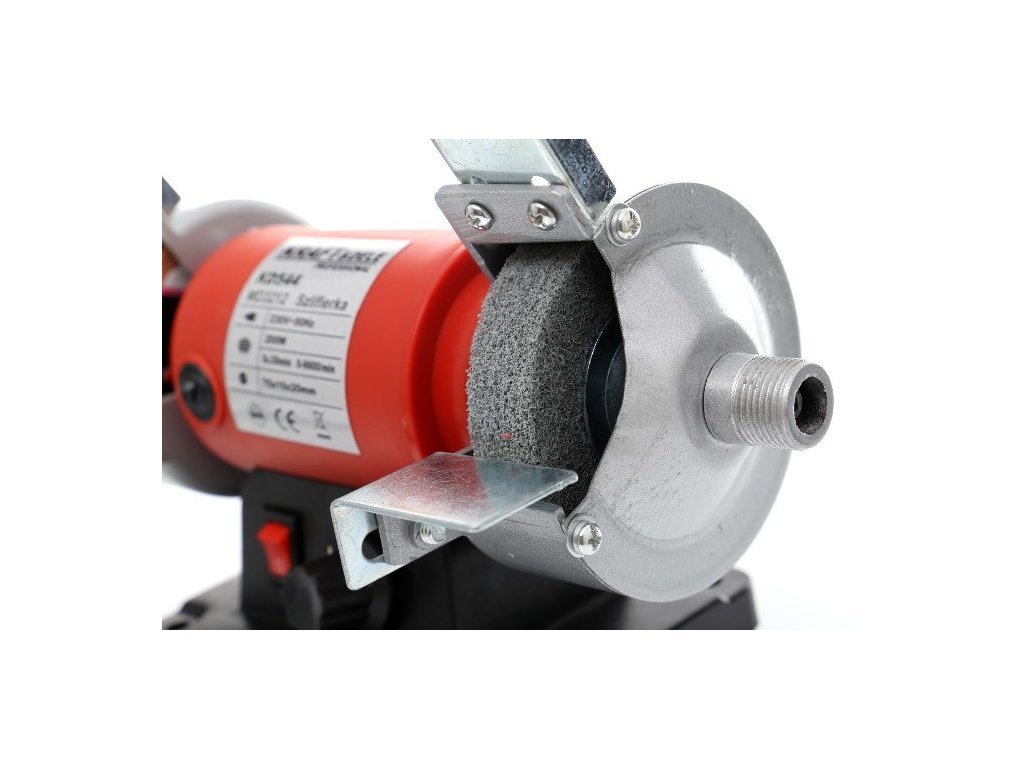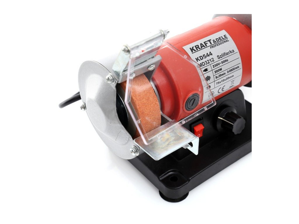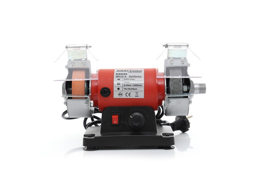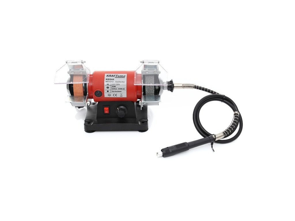 Stolní bruska KD544 je profesionální 200W nástroj určený k leštění a broušení. Zařízení se vyznačuje vysokou kvalitou zpracování, vyrobené za použití nejnovějších technologií a osvědčeného designu. Kryty disků jsou vyrobeny z pevné hliníkové slitiny. Součástí sady jsou také průhledné ochranné kryty, umožňující přesnou práci bez obav o naše zdraví, zajišťující bezpečnost a komfort používání. Bruska je velmi univerzální mimo jiné díky použití měkké hnací hřídele, kterou lze použít k broušení/leštění na těžko dostupných místech. Zařízení je schopné dosáhnout až 9 900 otáček za minutu a plynulá regulace se provádí pomocí knoflíku. Díky malým rozměrům a hmotnosti je zařízení velmi mobilní a snadno se přepravuje a použité přísavky zajišťují pevné, pevné umístění nástroje na pracovišti.