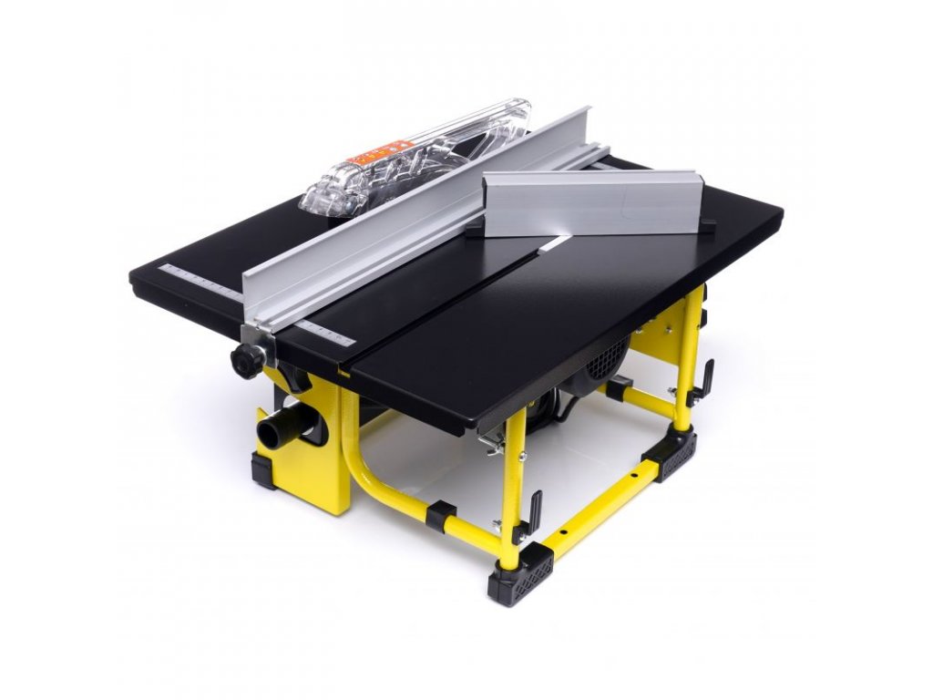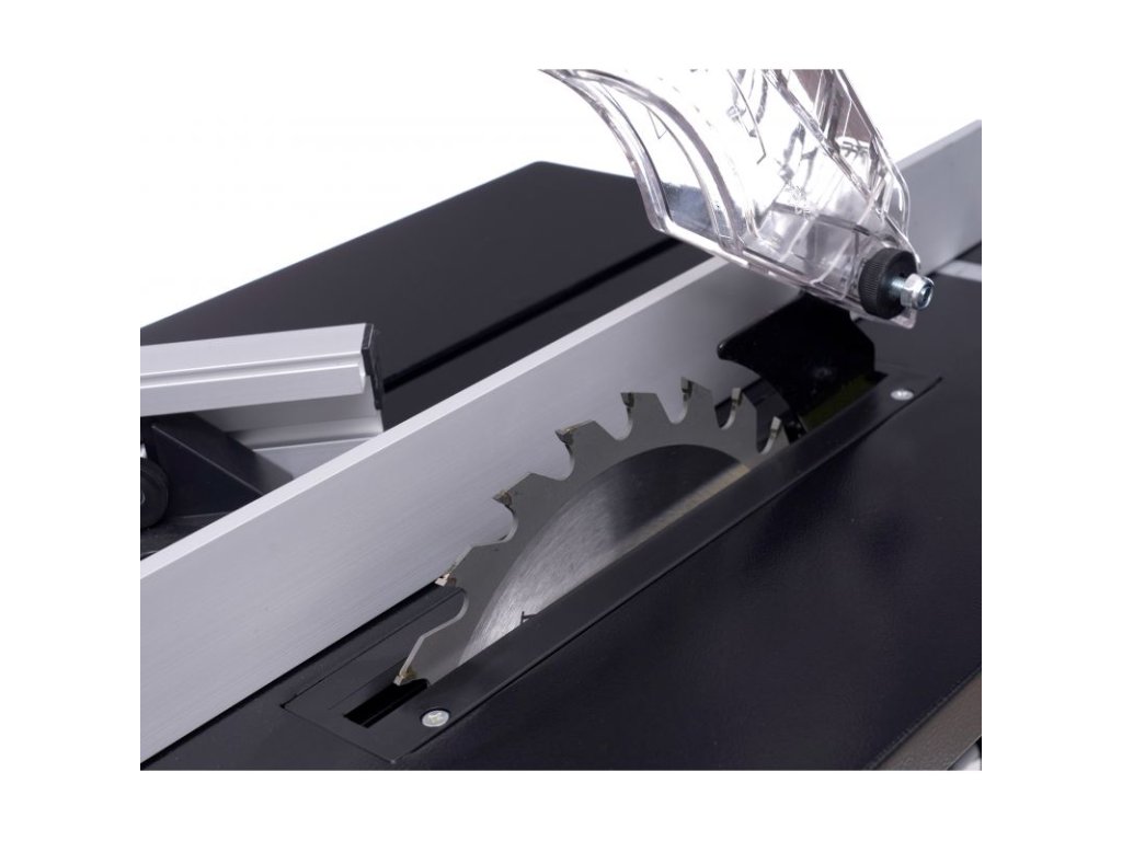 Systém odstraňování pilin snižuje šíření pilin a prachu. Stolní pila s motorem o příkonu 2 000W umožňuje provádět základní řezací operace na dřevěných materiálech a plastu. Díky pilovému kotouči 200mm zvládne řezy do výšky 43mm.