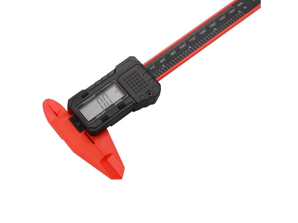 Urządzenie wyposażono w czytelny, cyfrowy wyświetlacz LCD, który umożliwia łatwy odczyt wyników w milimetrach lub calach. Konstrukcja wykonana z tworzywa sztucznego gwarantuje trwałość i odporność na zużycie, a precyzyjne prowadzenie szczęk zapewnia powtarzalność pomiarów.