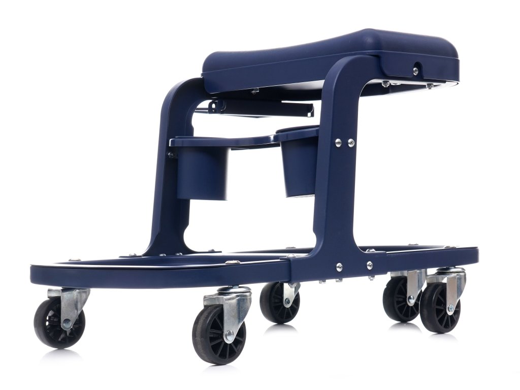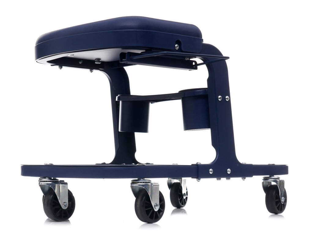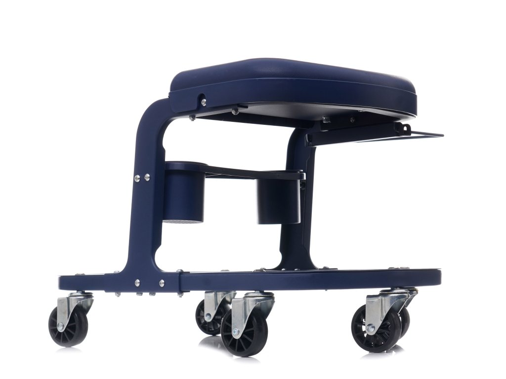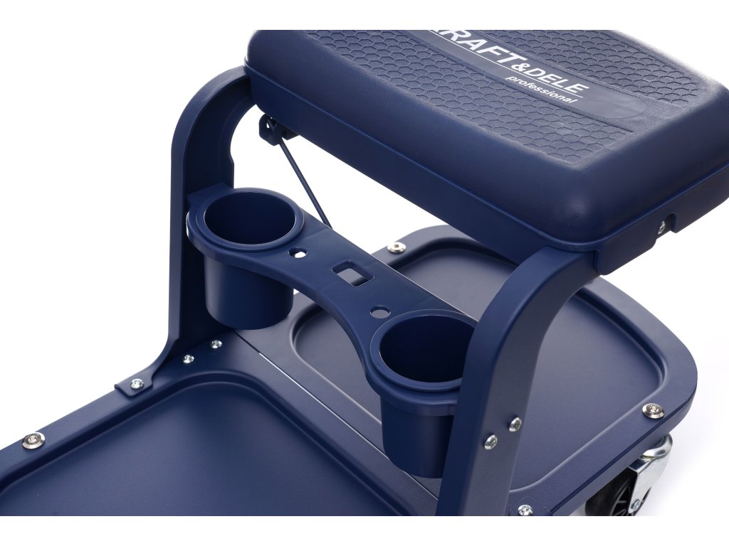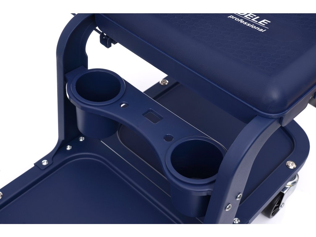 Taboret z kółkami zapewni wygodę podczas prac warsztatowych. Komfortowy uchwyt po prawej stronie może służyć do ręcznika, narzędzi itp,. Pod siedziskiem zostały zamontowane 2 pojemniki.