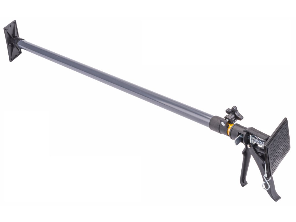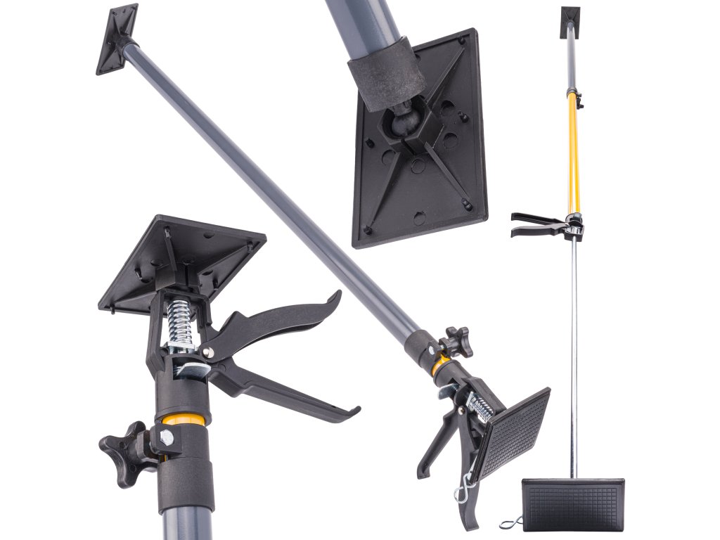 Podpěra najde uplatnění při instalaci stropních/stěnových (sádrokartonových) desek v nepříjemných úhlech nebo při opravách lepených povrchů. Teleskopická funkce umožňuje nastavení výšky a otočné přítlačné desky zajišťují stabilní upevnění.