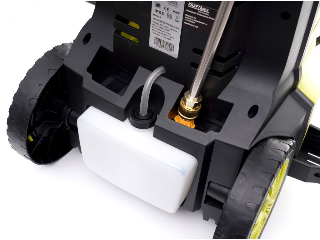 Vysokotlaká myčka KD423 je všestranný nástroj, který lze použít pro různé úkoly čištění a údržby. Používá se k čištění fasád, teras, zahradního nábytku, automobilů atd. Lehká konstrukce a 5 m dlouhý napájecí kabel činí práci s naší značkovou myčkou příjemnou a jednoduchou. Navíc má automatické vypínání motoru, které zapíná a vypíná motor stisknutím stříkací pistole. To nejen šetří přístup k zařízení, ale také výrazně snižuje náklady na vodu a elektřinu a chrání čerpadlo a životní prostředí.