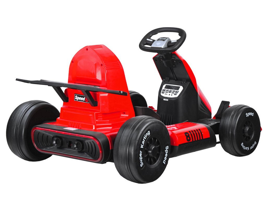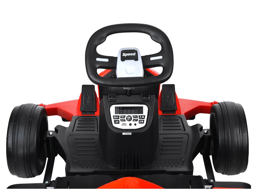 Elektrická motokára s dálkovým ovládáním je ideální pro každého malého řidiče, který má rád závody formulí. Motokára je velká, pohodlná a navíc má dálkové ovládání pro rodiče. Motokára na kovovém rámu má plastové šasi, pohodlné sedadlo a sportovní volant. Motokára má ovládací panel zodpovědný za řízení vozidla, zvukové a světelné efekty. Pravý pedál v motokáře je plynový a pod levým pedálem je brzda. Dálkové ovládání v motokárách se používá k ovládání vozidla, ale jakmile se mladý řidič naučí pravidla jízdy, ovladač bude sloužit pouze k zastavení mladého řidiče.