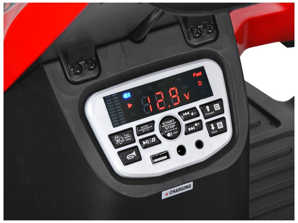 Motokára má 2 x 12V 30W motory + 1 x 12V 7Ah baterii + 2,4 GHz dálkové ovládání pro rodiče.