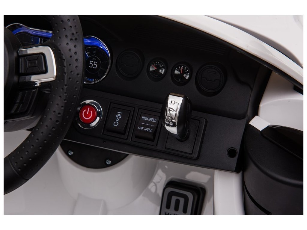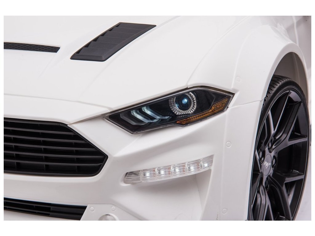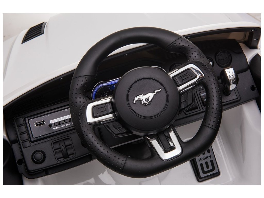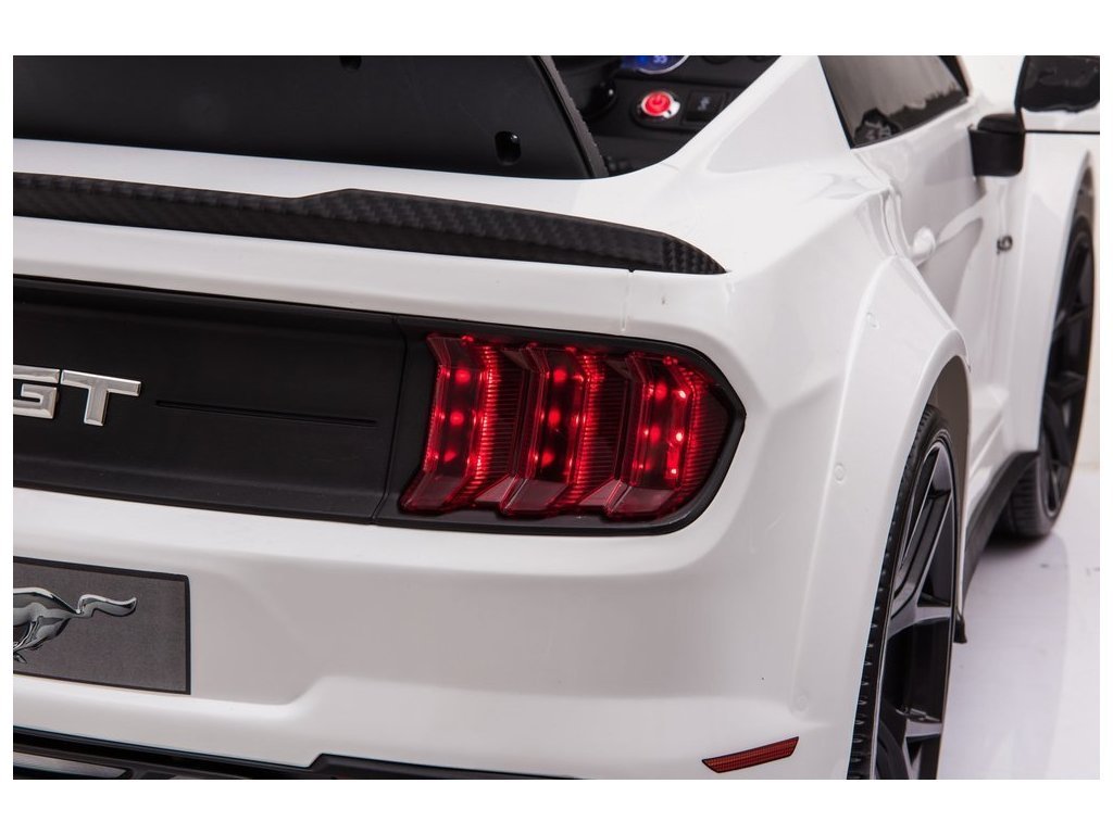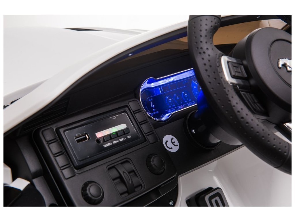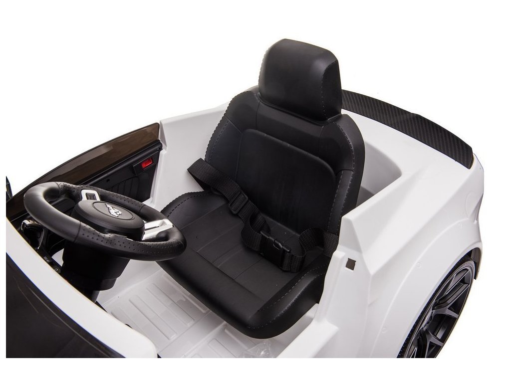 Elektrické autíčko Ford Mustang GT je stejně dobré jako jeho plnohodnotné provedení - jeho design a zpracování vychází z původní licence Ford Motor Company. Vozidlo poháněné dvěma 12V 7Ah gelovými bateriemi a dvěma 45W motory nikoho nezklame. Vůz v bílé barvě bude přitahovat pohledy kolemjdoucích precizním zpracováním. Má také madlo a dvě malá kola aby po vybití baterie mohl rodič auto snadno a pohodlně přepravit na správné místo s přístupem k nabíjecí zásuvce. Miniaturní verze Fordu na baterie se může pochlubit fantastickou výbavou. Měkké sedadlo vyrobené z černé ekologické kůže. Dalším prvkem, který stojí za zmínku, je hudební panel s USB, SD a MP3 vstupem. Elektrické autíčko udělá velkou radost i menším dětem - po utažení bezpečnostním pásem může dítě cestovat ve svém Fordu řízeném rodičem. Součástí vozidla je 2,4 G dálkový ovladač, který má funkci přední/zadní, pravé/levé ovládání, volbu rychlosti a také možnost nouzového zastavení vozidla.