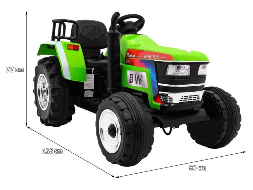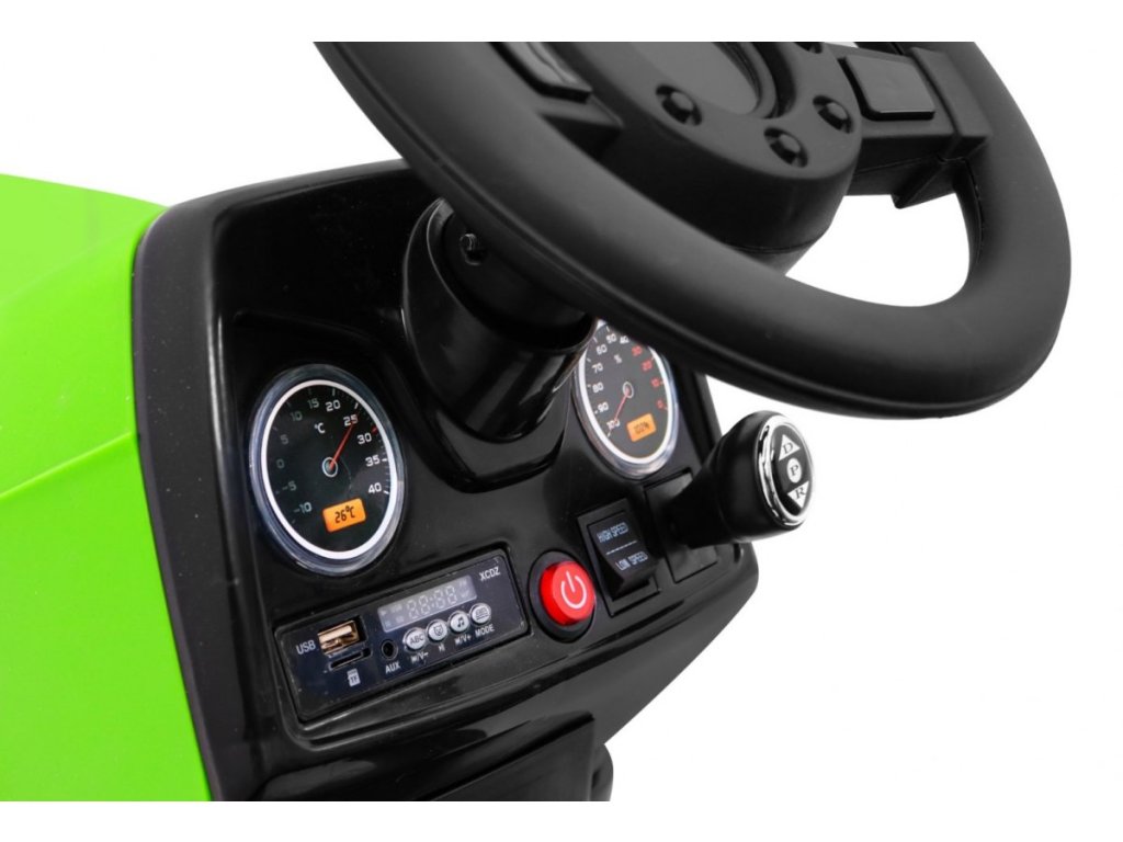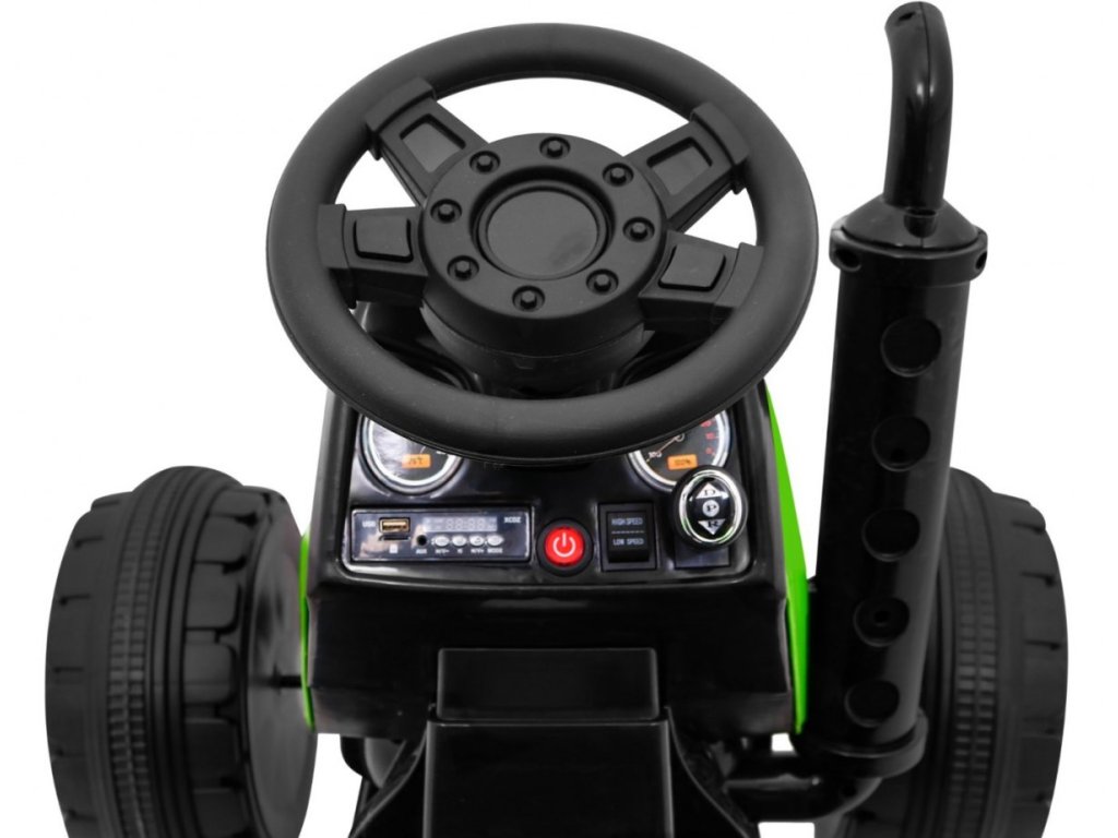 Dětský elektrický traktor na dálkové ovládání 2,4GHz. Na dálkovém ovládání je možnost zvolit 3 rychlosti a tlačítko STOP pro bezpečné zastavení vozu.