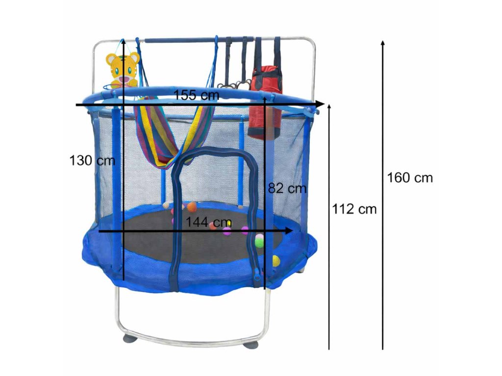 Použitá robustní ochranná síť vytváří účinnou ochranu proti pádu, fungující diskrétně, ale důsledně. Zajišťuje rovnováhu mezi svobodou a ochranou, proto se propracovaná konstrukce trampolíny a jasně definované maximální zatížení až 150 kg promítají do stability a pohodlí. Jedná se o produkt nejvyšší kvality, který se díky bohatému příslušenství stává multifunkčním prostorem pro hru a pohyb. Tato modrá dětská trampolína s basketbalovým košem je navržena pro maximální bezpečnost a zábavu.