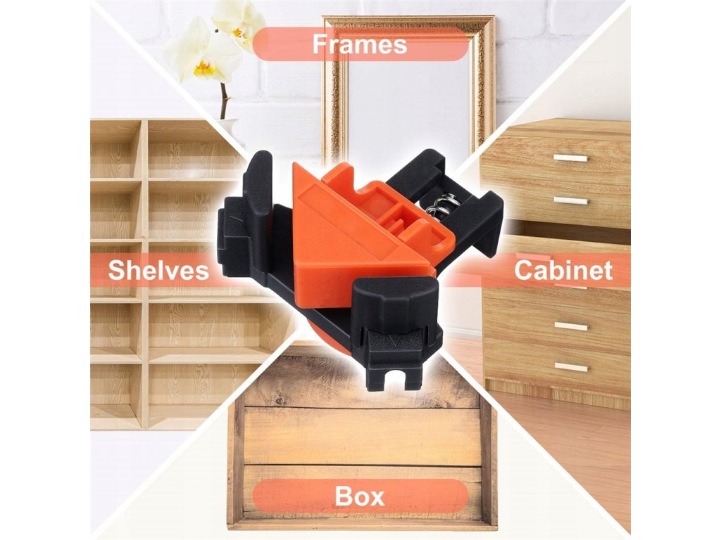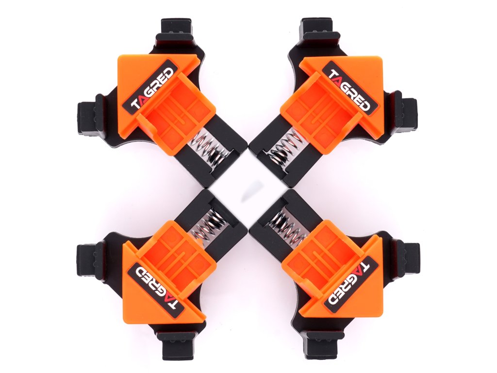Zefektivněte a zrychlete každou truhlářskou práci s profesionálními úhlovými svorkami TAGRED! Tyto inovativní klipsy jsou navrženy pro rychlé a bezchybné spojování desek a rámů přesně pod úhlem 90°. Ať už montujete police, stavíte malé skříňky nebo sestavujete rámečky, naše truhlářské svěrky zajistí dokonalou přesnost a pevnost spoje. Jsou nepostradatelným pomocníkem při šroubování, lepení či spojování dřevěných dílců, ideální pro klasické rohové spoje i složitější „T“ spoje.