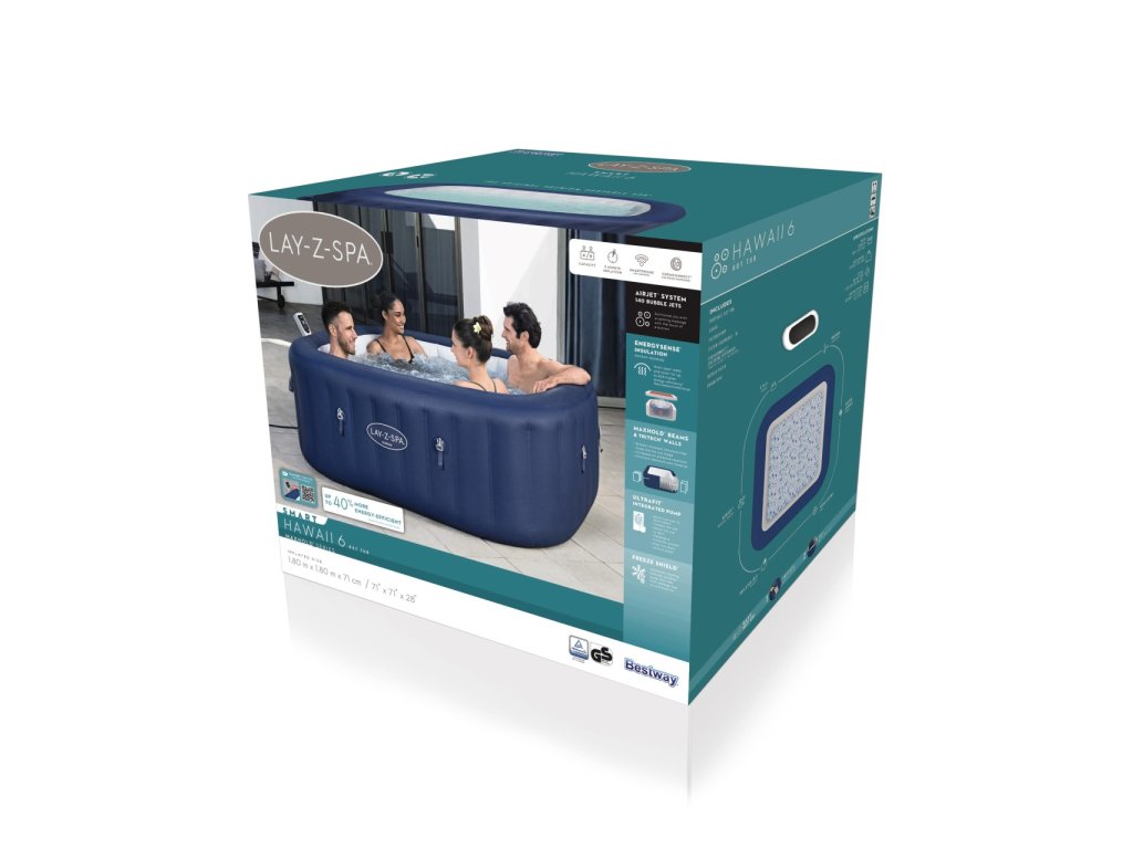 Představujeme vám luxusní nafukovací vířivku Lay-Z-Spa HAWAII SMART Air Jet od renomované značky Bestway, která promění vaši zahradu nebo interiér v oázu klidu a relaxace. Tato inteligentní vířivka, jejíž čerpadlo i samotné SPA jsou pečlivě testovány pro zajištění nejvyšší kvality, je navržena pro maximální pohodlí a bezstarostný provoz pro 1 až 6 dospělých osob.