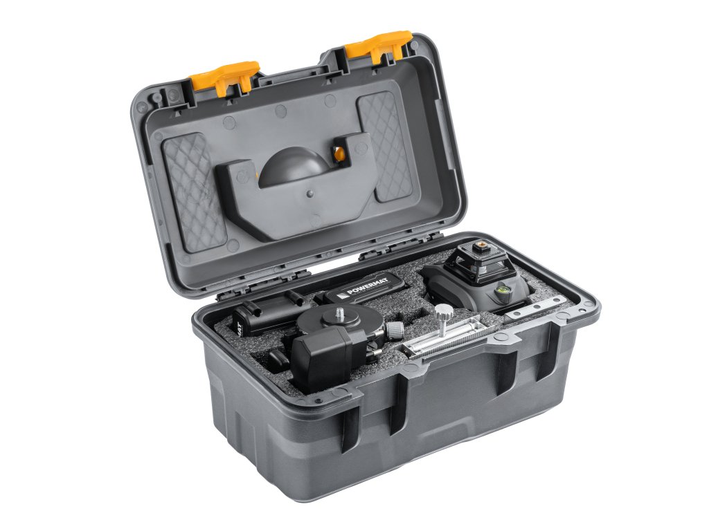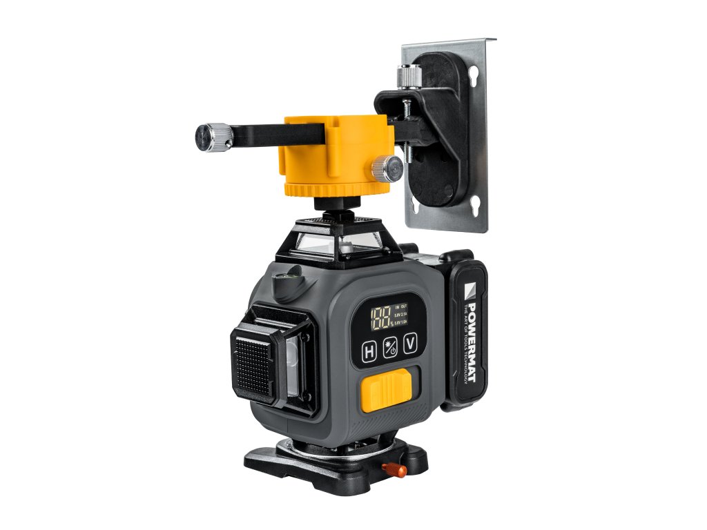 Díky zelenému laseru s vlnovou délkou 532 nm jsou linie jasně viditelné i za zhoršených světelných podmínek nebo na větší vzdálenosti až 40 metrů. Funkce samonivelace v rozsahu ±3° automaticky zajistí správné nastavení, což vám ušetří čas a eliminuje chyby. Pro práce pod úhlem lze samonivelaci uzamknout. Odolná konstrukce s krytím IP54 chrání přístroj před prachem a stříkající vodou, takže je spolehlivým partnerem pro práci uvnitř i venku. Dva výkonné Li-Ion akumulátory s kapacitou 3600 mAh a LCD displej s indikací stavu nabití zaručují dlouhý a nepřerušovaný provoz. S dálkovým ovládáním můžete snadno měnit nastavení, aniž byste museli opustit pracovní pozici. Zvyšte svou produktivitu a dosáhněte bezchybných výsledků s laserem POWERMAT.