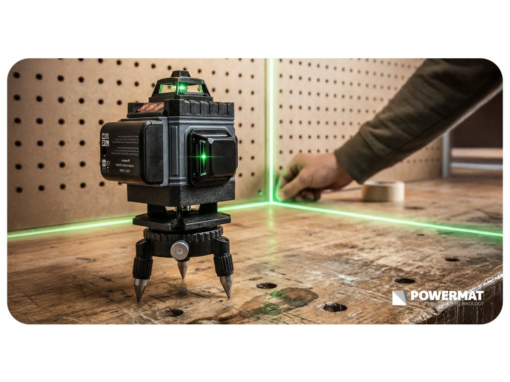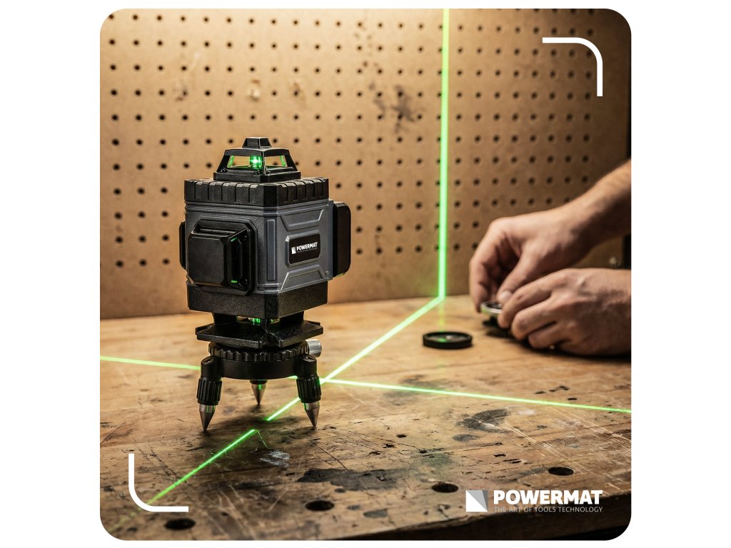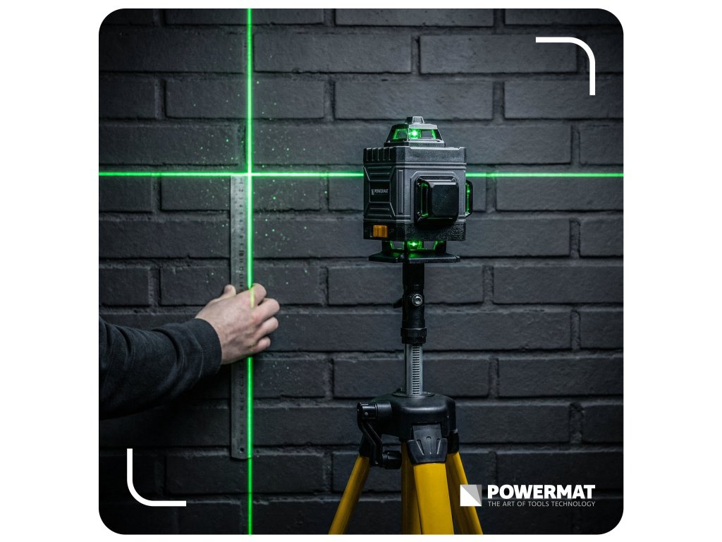 Představujeme vám špičkový křížový laser POWERMAT PM-PLK-4DM1, který přináší revoluci do vašich stavebních a dokončovacích prací. Tento pokročilý 4D laser se 16 zelenými linkami o vlnové délce 532 nm promítá kompletní 360° pokrytí, což vám umožní rychlé a bezchybné nivelování i vytyčování s neuvěřitelnou přesností ±1 mm na 10 metrů. Zapomeňte na neustálé přemisťování nástroje – s jedním nastavením získáte dokonalou kontrolu nad celým prostorem.