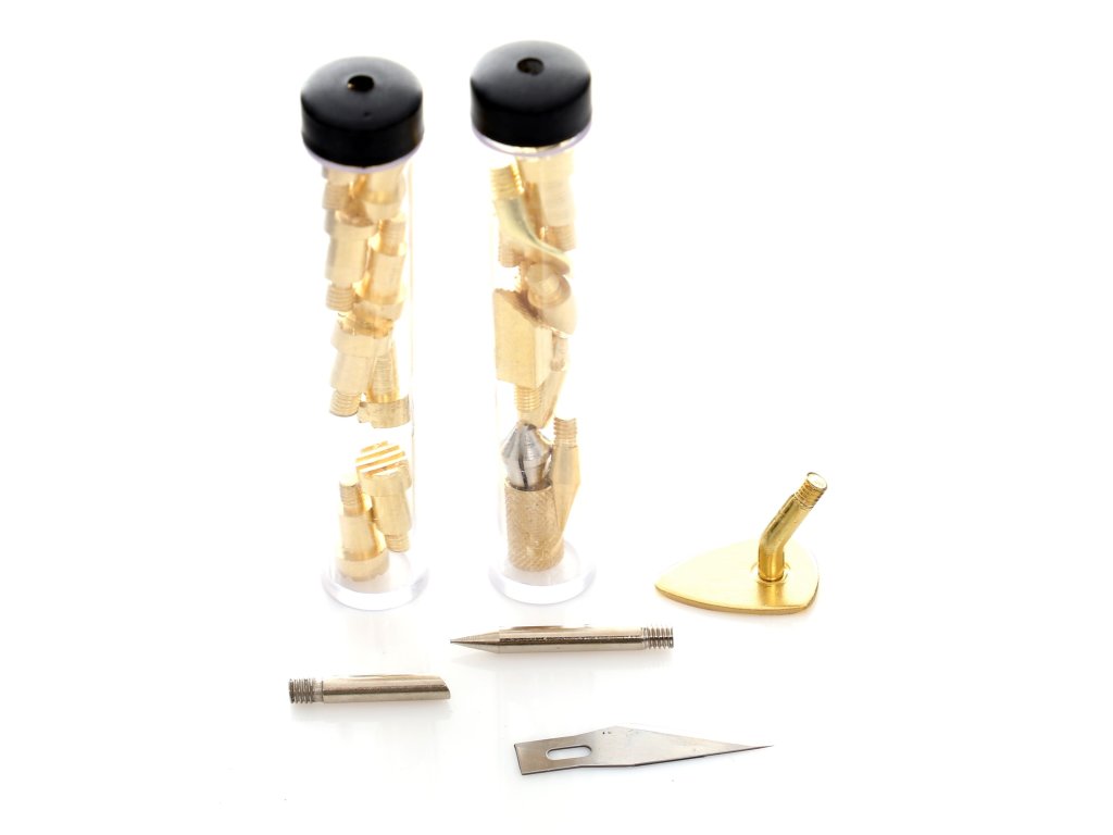 Vypalovačka do dřeva, kůží má měnitelné hroty. Každý hrot zanechává speciální stopu. Volbou hrotu, vypalovací teploty, náklonu a doby kontaktu s materiálem můžete dosáhnout různých šraf a intenzity odstínů. Lze dosáhnout konkrétních detailů až jemnosti kresby tužkou na papír. Vypalovačka je vhodná k vypalování ornamentů na dřevo, kůži a podobné materiály.