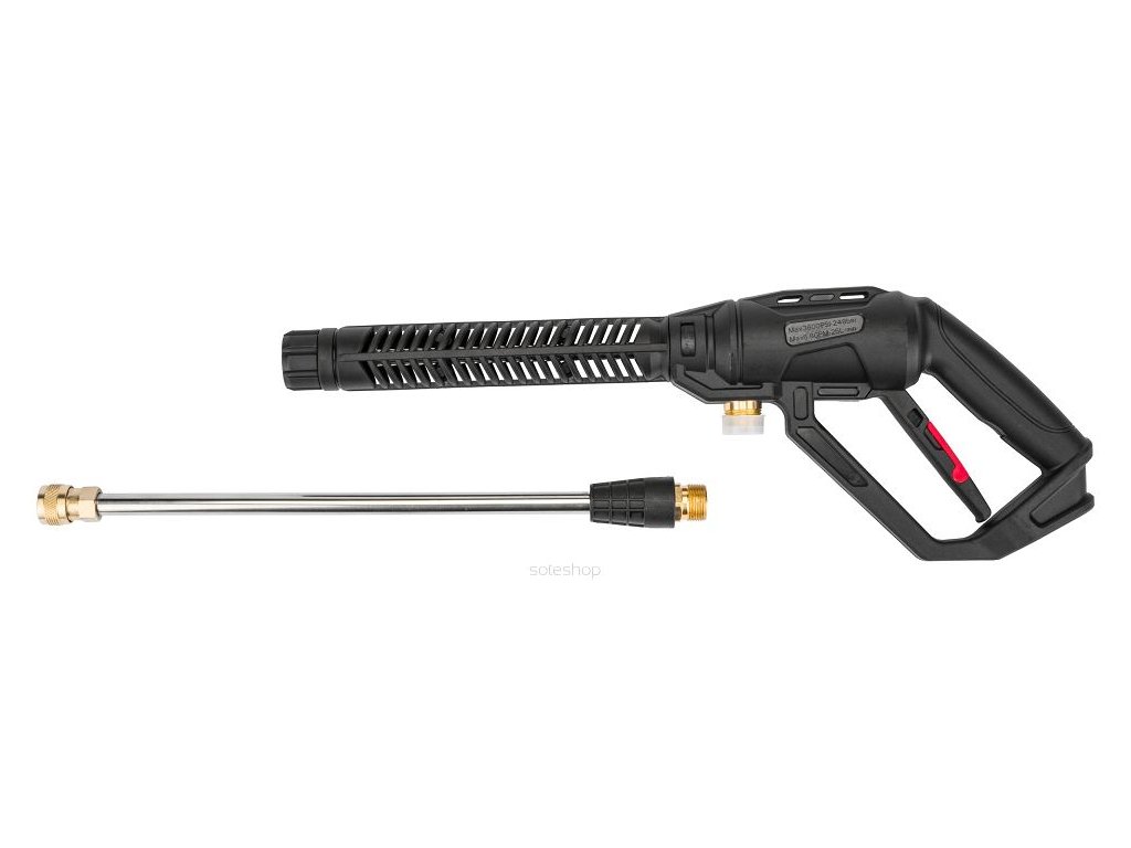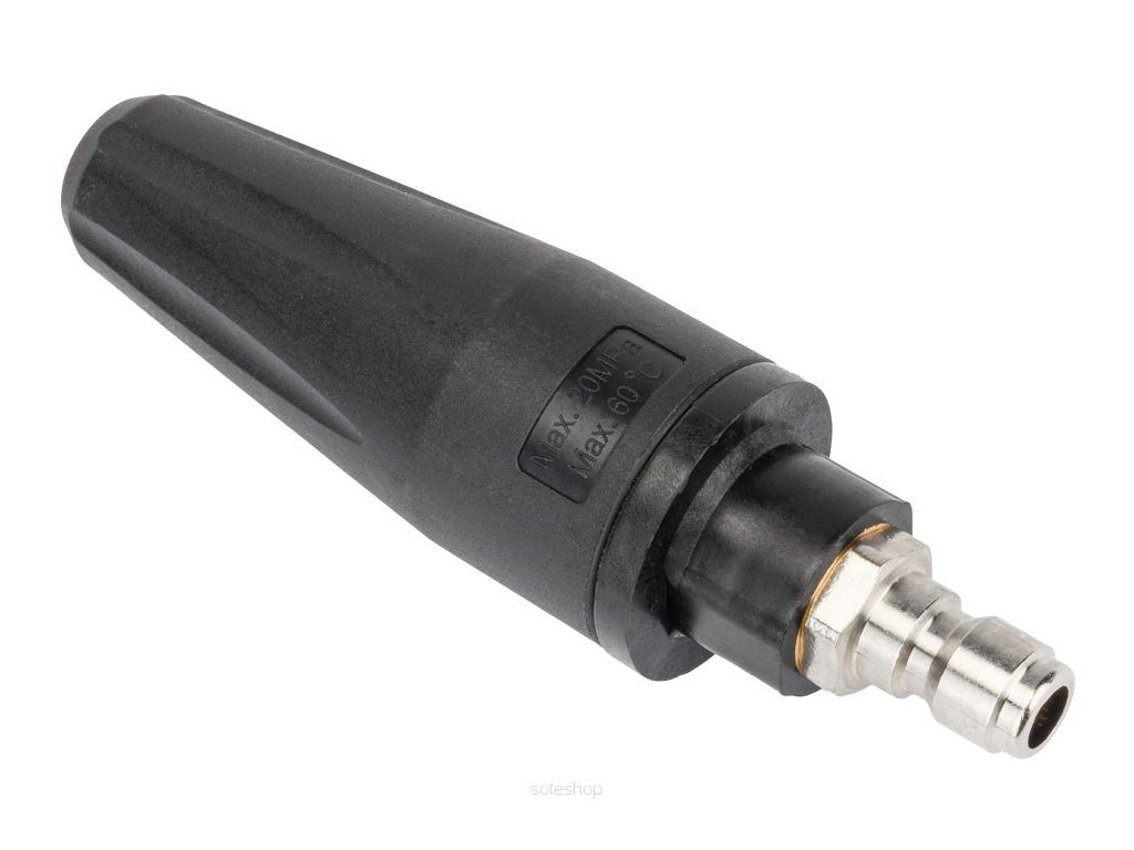 Rychlospojky umožňují snadné a bezpečné připojení hadice a příslušenství k myčce. Vyměnitelná turbohubice, 4 nerezové rozprašovací trysky a širokoúhlá tryska napevno instalovaná ve stříkací pistoli zajišťují vysokou efektivitu práce, díky které efektivně čistíte velké plochy, jako jsou terasy nebo fasády budov.