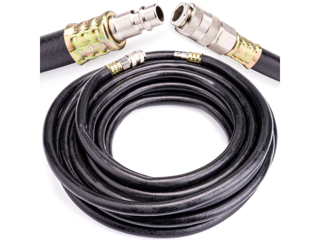 RYCHLÉ PŘIPOJENÍ K PNEUMATICKÝM ZAŘÍZENÍM, JAKO JSOU NAPŘ: Skládačky na plech, kompresory, lakovací pistole, pneumatické nýtovací pistole, pneumatické klíče, vrtačky, leštičky, brusky atd. Díky tomu, že není šroubovitá, lze ji navinout na buben. Největší výhodou je, že je vyroben z vysoce kvalitní pryže, která je odolná proti olejům, pružná a vydrží vysoký tlak.