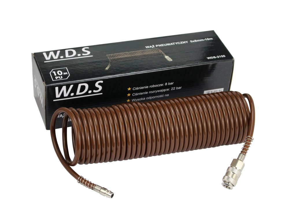 Wąż pneumatyczny polskiej marki W.D.S WDS2155 o długości 10m. Świetnie nada się do szlifierek, kluczy udarowych, pistoletów lakierniczych. Swoje zastosowanie znajdzie również w serwisach samochodowych czy lakierniach proszkowych.