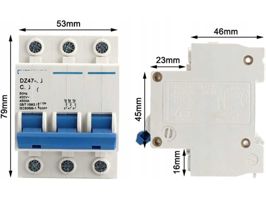 Wyłącznik bezpiecznik nadprądowy do agregatów 3 biegowy DZ47-63 C3 400V GER