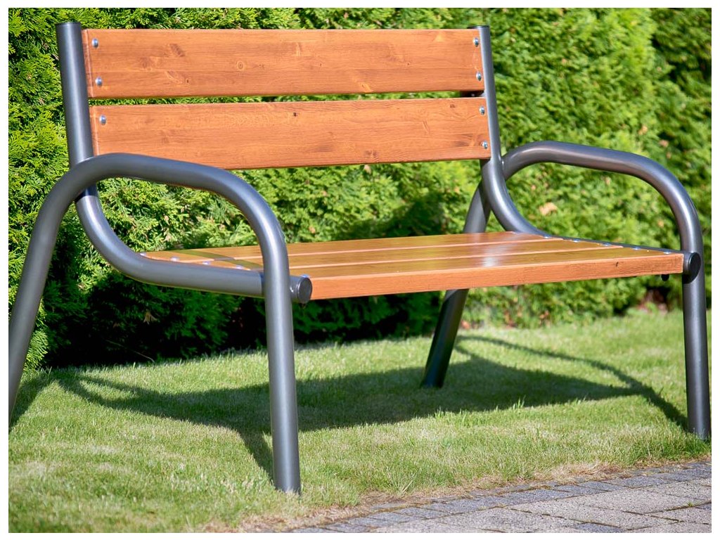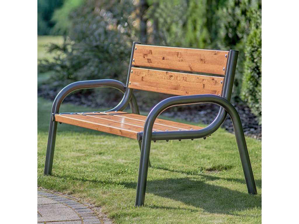 Zahradní dřevěná lavička neodmyslitelně patří do každé zahrady. Konstrukce lavice je vyrobená z trubek o průměru 50 mm, malovaných práškovou barvou (antracit), která je odolná proti UV záření. Lavička má protiskluzové nohy. Sedadlo a opěradlo je vyrobeno z desek Lux o šířce 135 mm. Desky jsou vyrobeny z pevného materiálu, pro zvýšení odolnosti jsou desky impregnovány prostředkem proti houbám a plísním. Dřevo je lakované, vhodné pro venkovní použití. Prostředek chrání povrch před vlhkostí, slunečním zářením a nečistotami. Šrouby jsou pozinkované, chráněné. Vytvořte si svou soupravu z naší nabídky produktů Park Lux. Jednoduchá demontáž, pokud nechcete nábytek užívat celoročně.