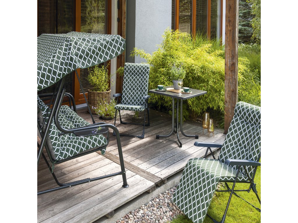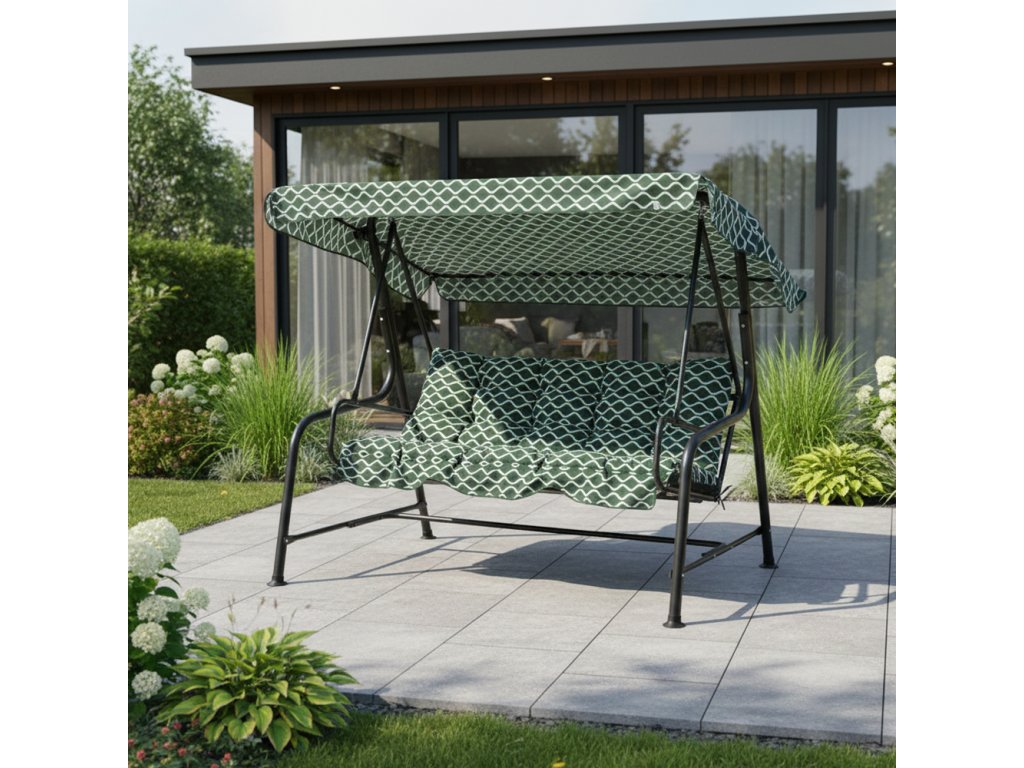 Zahradní houpačka v zeleno-bílém designu