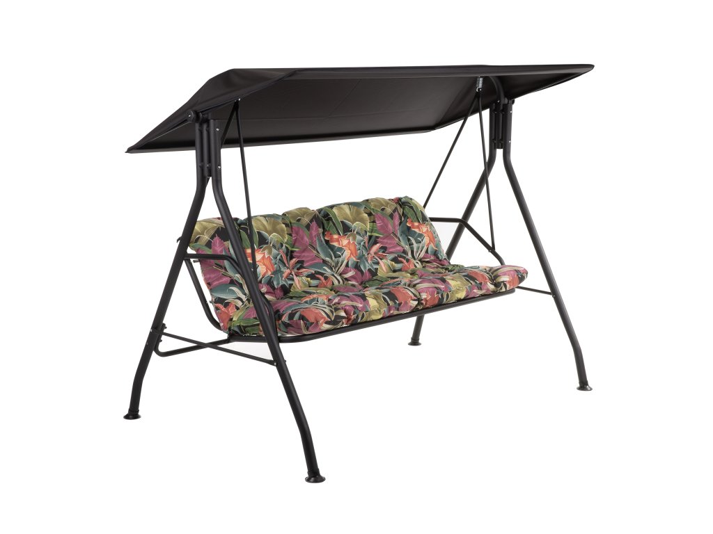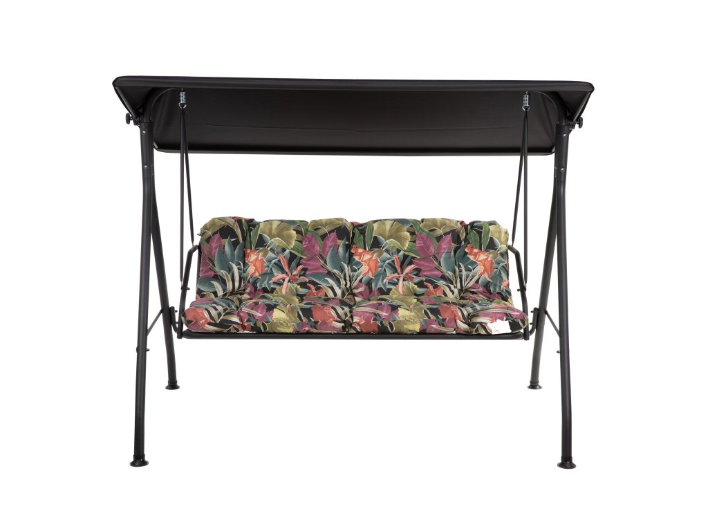 Komfortní posezení zajišťuje měkký sedák, s výrazným tropickým vzorem, který přitáhne pozornost. Sedák je vyplněný řezanou houbičkou flocke. Vrch i spodek sedáku je vyrobený ze 100% polyesterového mikrovlákna, které je velmi příjemné na dotek. Nastavitelná stříška chrání před sluncem a umožňuje vám užít si chvíle relaxace i v horkých dnech. Stříška je vyrobena z PE materiálu odolného vůči UV záření.