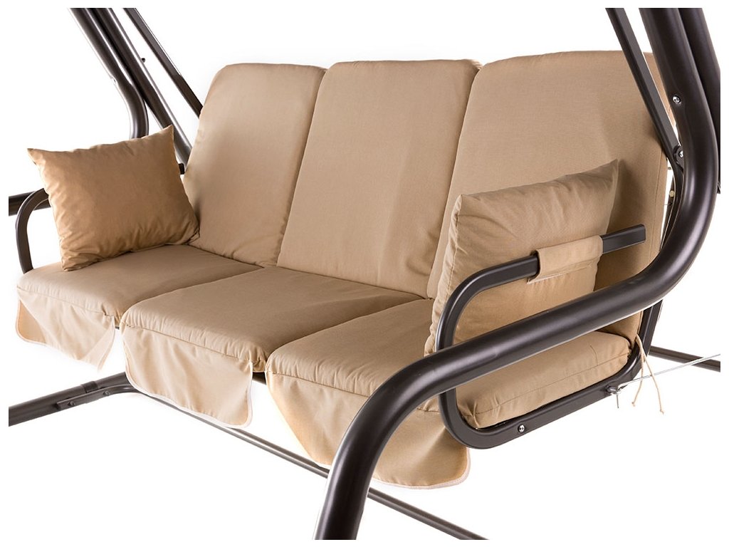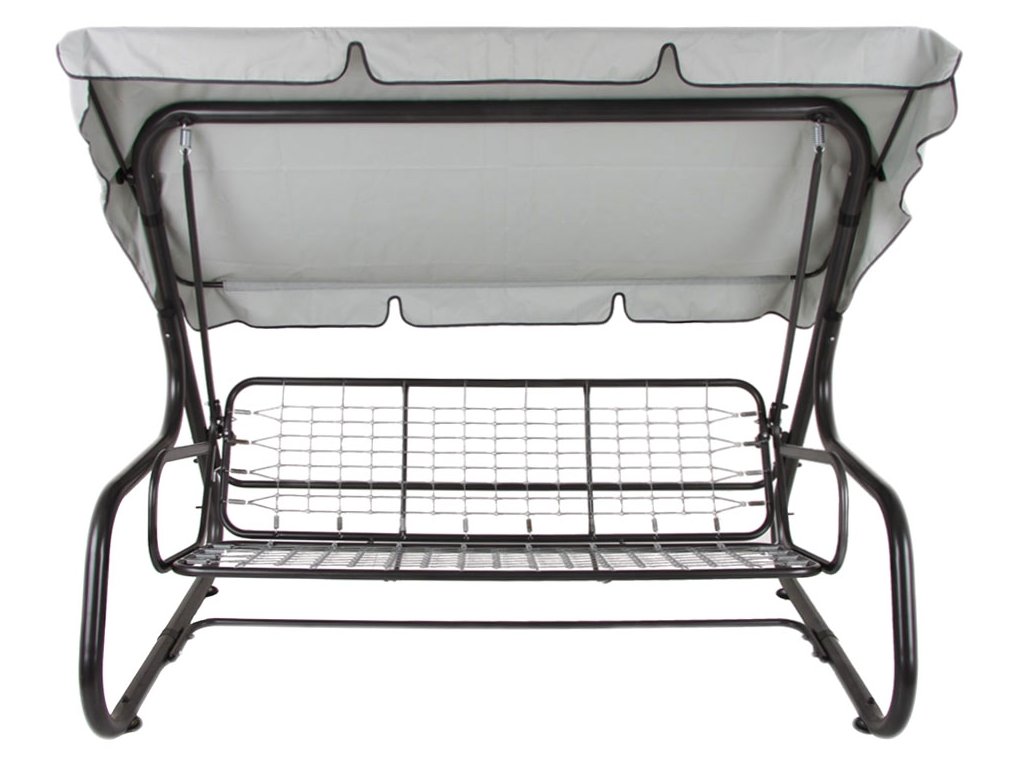 Model Rimini je nejlepší houpačka, vhodná až pro čtyři dosplělé osoby. Široké a pohodlné sedadlo lze snadno změnit na ideální místo, kde si můžete lehnout. Odolná konstrukce rámu z tlustých a odolných ocelových trubek s práškovým nástřikem zajišťuje bezpečnost odpočinku. Vysoce kvalitní zpracování a a pozornost každému detailu zahradní houpačky dává životnost a funkčnost při každodenním používáním. Výhodou houpačky je jednoduché, poholdné rozložení a stabilita sklopného sedadla. Houpačka je vybavena zámkem, který zabraňuje houpání v poloze ležení. Použité pružiny poskytují nejvyšší pohodlí při používání, jsou velmi trvanlivé a dodávají houpačce další stabilitu. Zahradní houpačky se sedadlem na pružinách usnadňují výměnu polštářů, které jsou součástí balení. Houpačka Rimini se vyznačuje funkční, polyesterovou stříškou. Je možné snadno nastavit úhel stříšky.